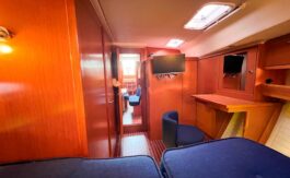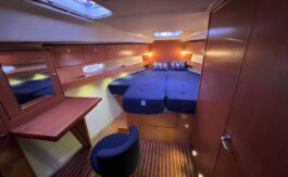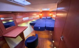 The boat has a huge amount of living space, ideal for family sailing or extended periods aboard, with a superb master cabin forward and two double cabins aft.
