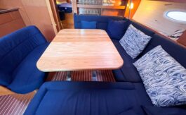 The design promises fast passages in safety and comfort. Powered furlers for the mainsail and genoa, together with powered winches, ensure easy sail handling when sailing shorthanded.