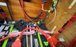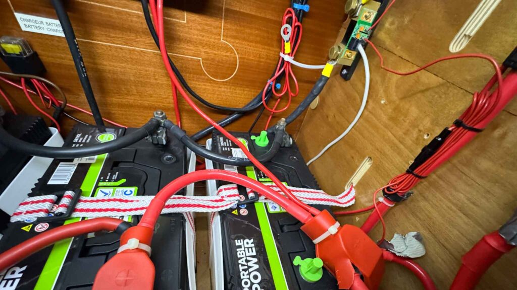 12V DC system. Switchboard with circuit breakers, voltmeter, 12V outlet.