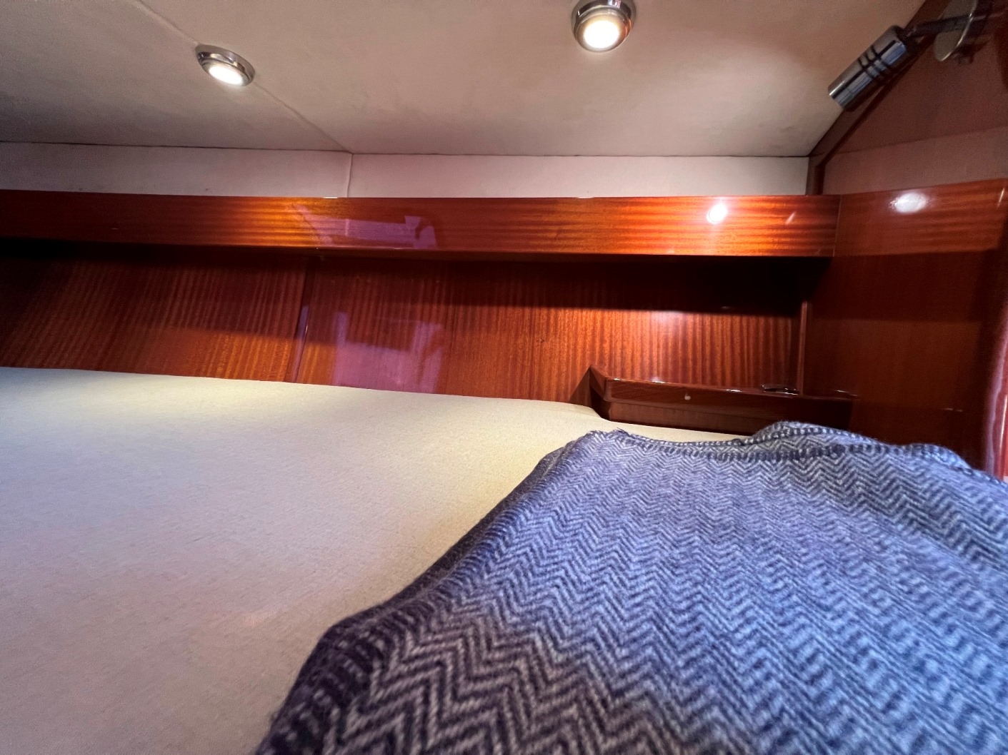 Large double V berth (L 2.18 x W 1.5 at head end)