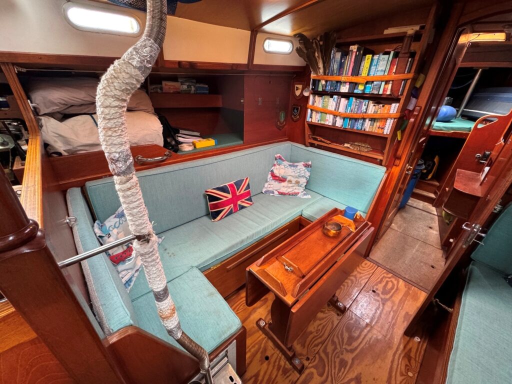Saloon with 2 settee berths, pilot berth & drop leaf table