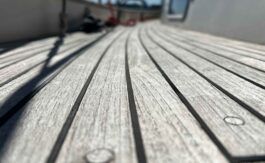 Decks & Superstructure: GRP sandwich construction with 25 mm foam core; Teak-laid side decks and toerail, doghouse cockpit, integrated grab rails