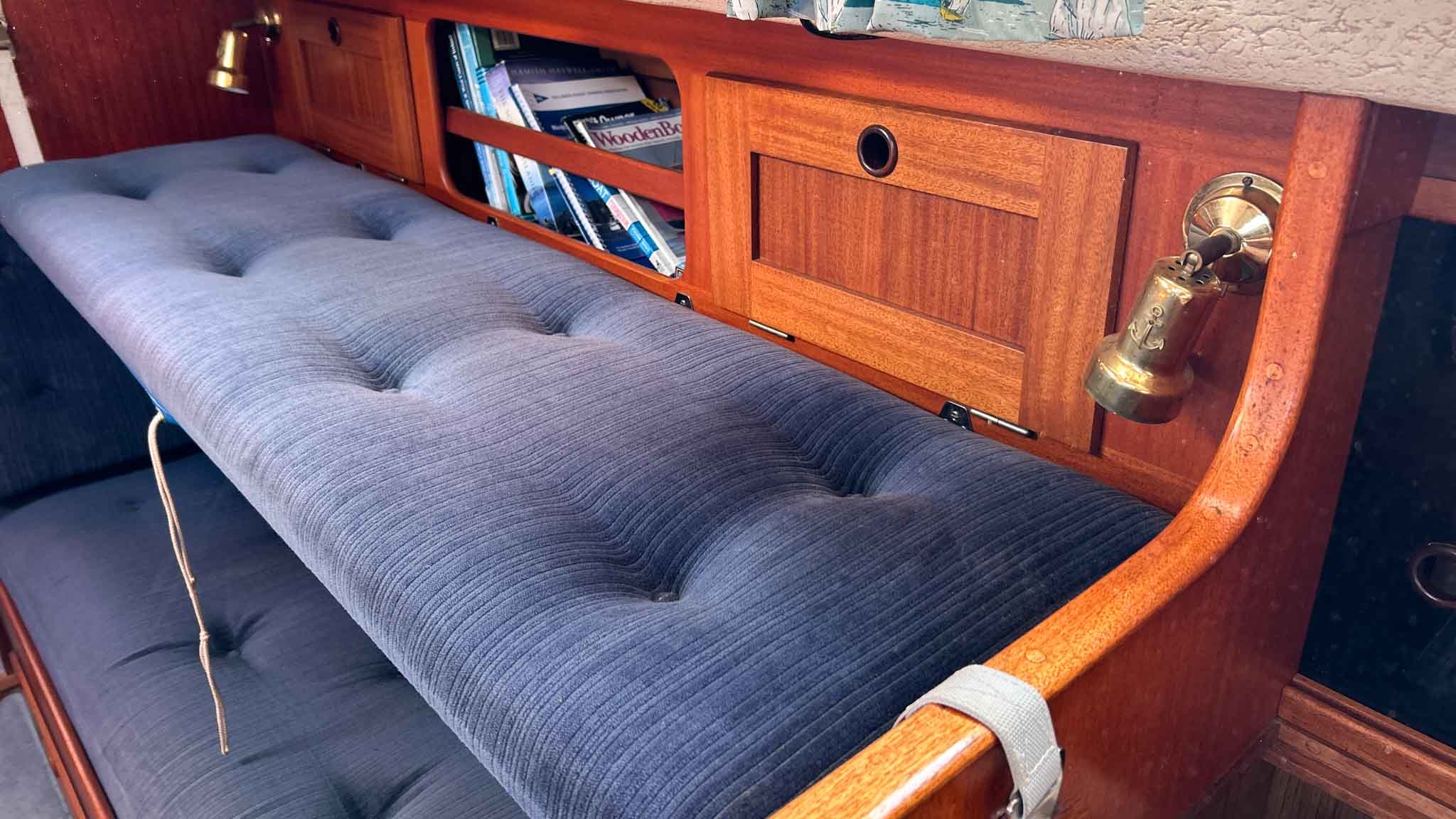 Interior Finish: Light mahogany woodwork, fitted carpets (2019), LED lighting, protective berth covers, curtains to portlights (2020)