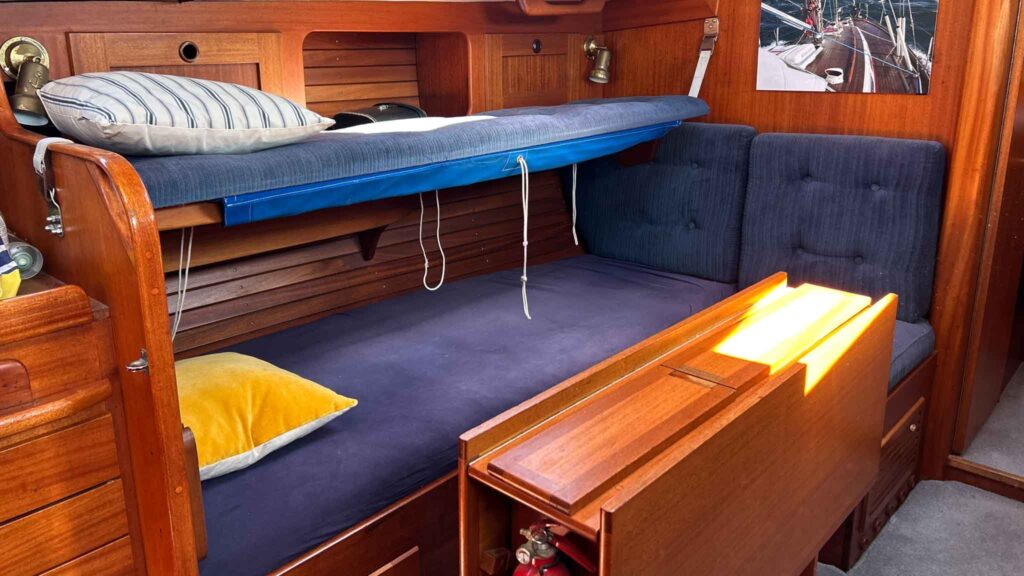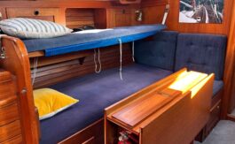 This yacht comes with comprehensive upgrades and modern systems: in-mast reefing, AIS (new in 2022) bow thruster, electric windlass, 4-man liferaft (new 2023), serviced sails with new sacrificial strips and leech lines, and a new tricolour masthead light (2025). Her decks have been professionally serviced, and all work is documented with invoices. Delivered from the Hallberg Rassy yard with additional hatches, shelving by the cabin bunks, and extra tankage for fuel and water, she is ready for safe, comfortable cruising.