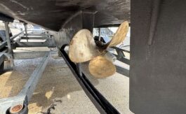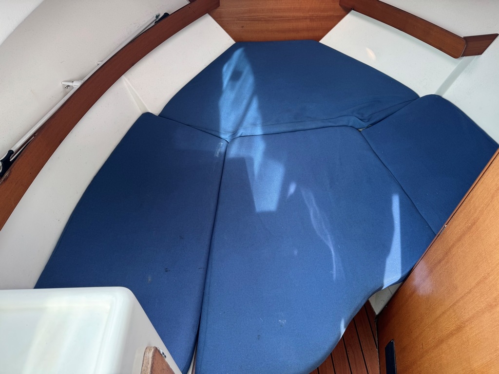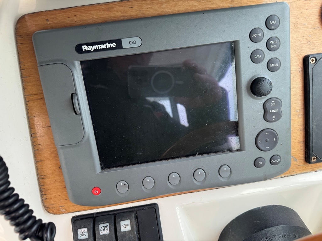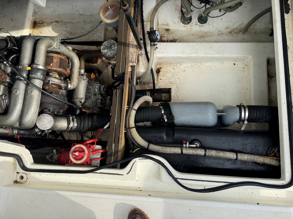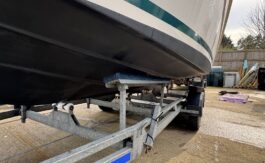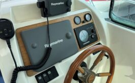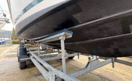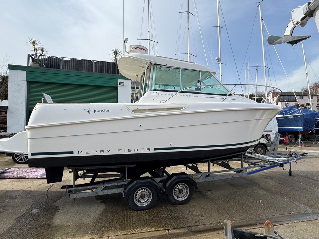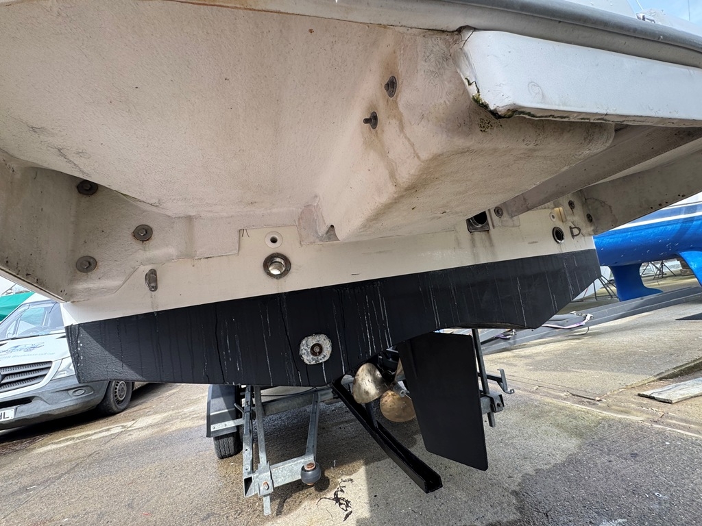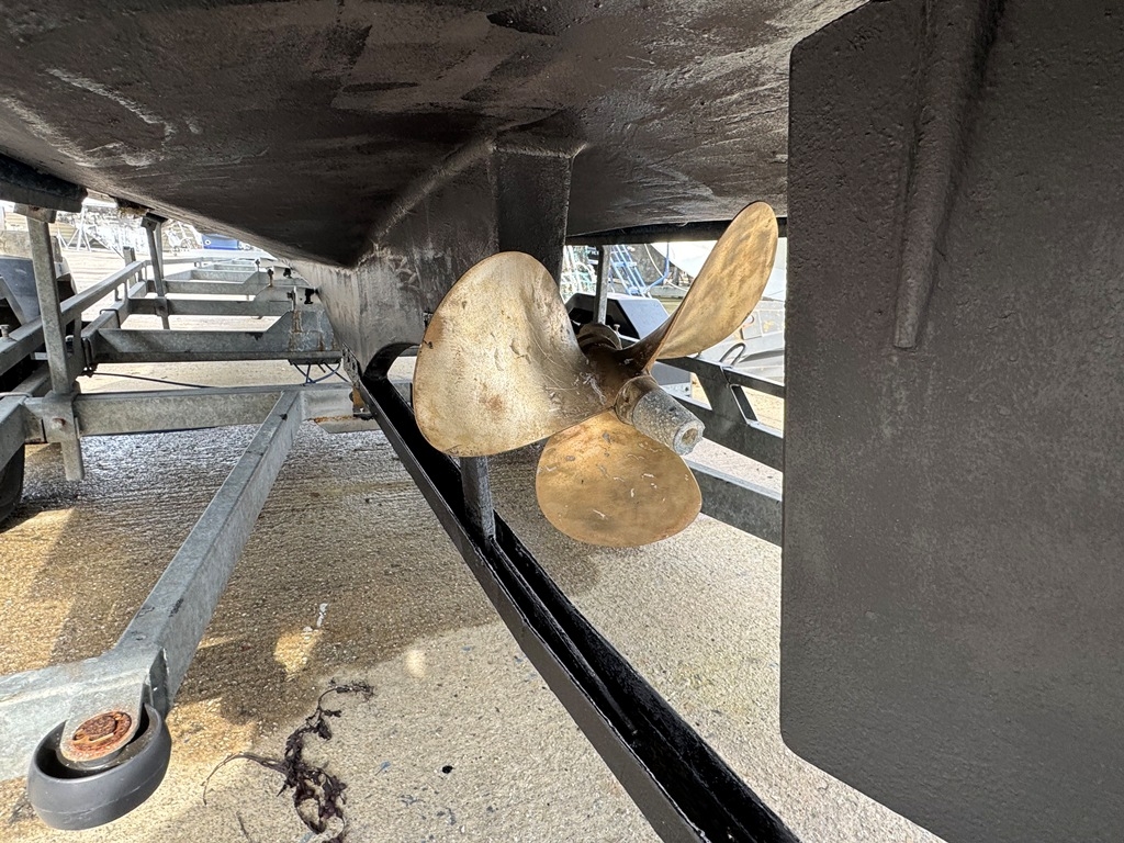 The Merry Fisher 655 has an inboard engine on shaft drive with a protected prop – she can take the ground.