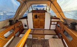 This Rossiter Curlew 32 was built in 1984, her GRP hull combined with beautiful joinery to the cockpit and capping rails give her a traditional feel and appearance with a modern twist. Her sailing performance is steady but rewarding, stiff and directionally stable, and she is a good passage maker. The furling mainsail and headsail make sailing her single handed a breeze! Traditional thinking extends to the spacious interior, where there are four berths in total provided by a double berth forward and 2 single berths in the saloon.