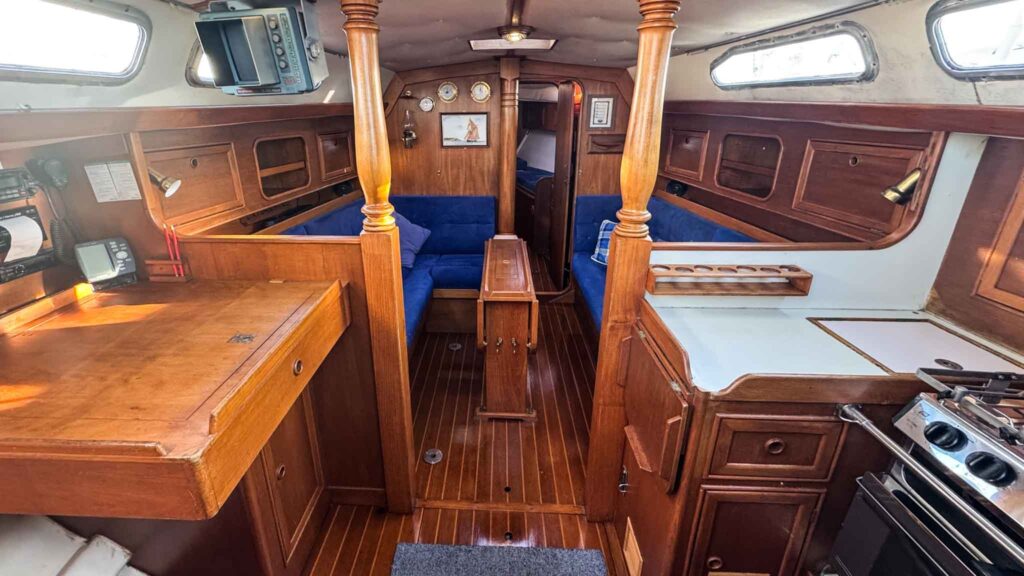 1990 Rustler 36 “Galliard” a classic long-keel cruiser that beautifully blends traditional craftsmanship with modern sailing design. Built for serious passage-making, she combines elegance, seaworthiness, and comfort in equal measure. With encapsulated lead ballast, robust construction, and a reputation for handling heavy weather with ease, the Rustler 36 is a proven bluewater yacht.