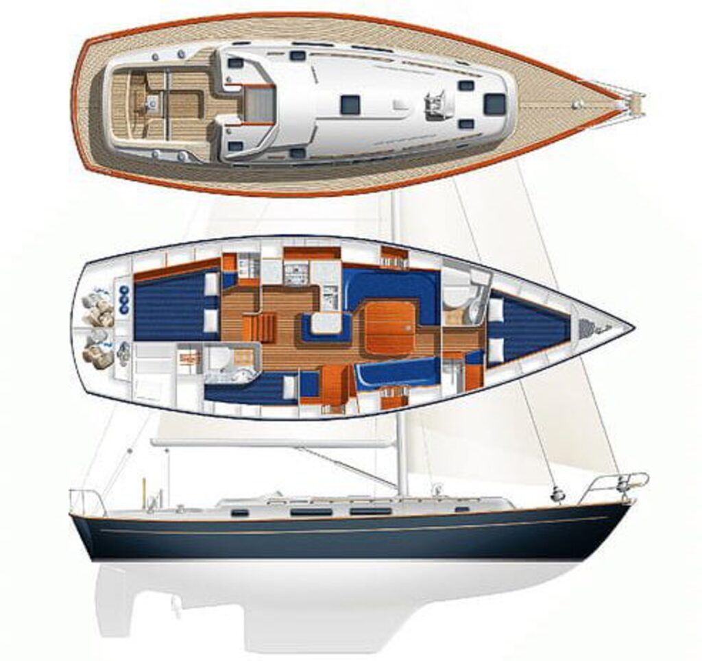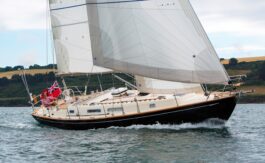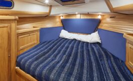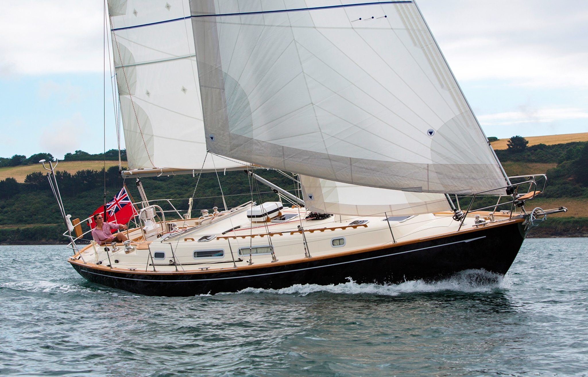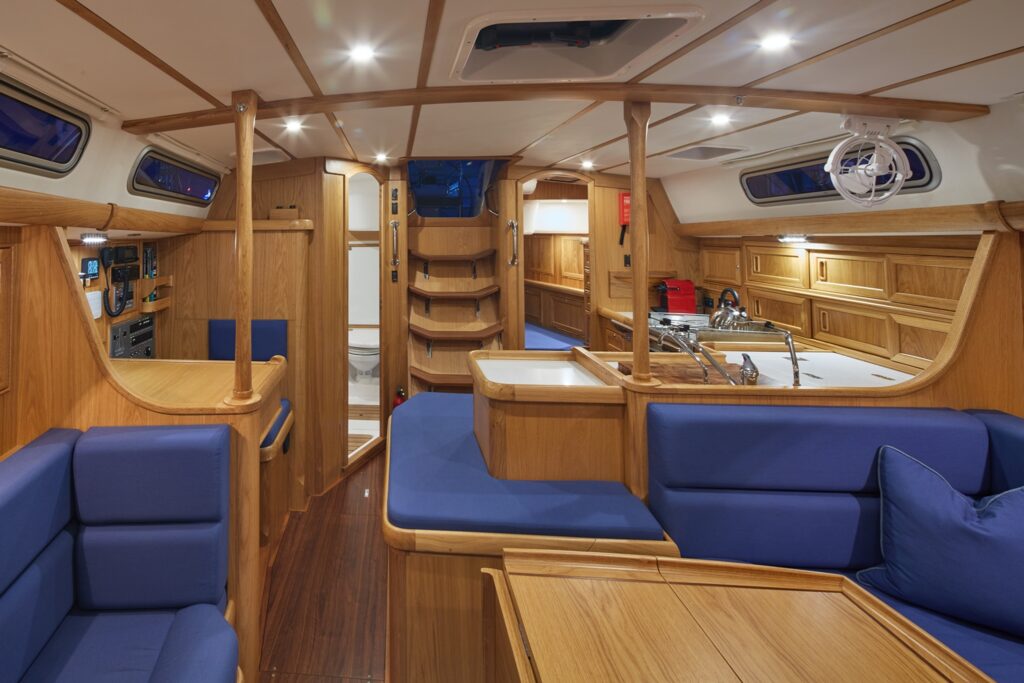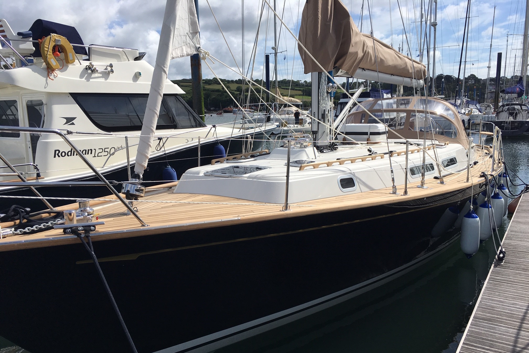 Moulded in classic dark blue with beautiful oak joinery (as only Rustler Yachts can do).