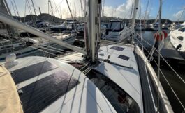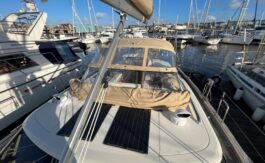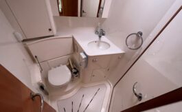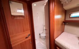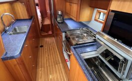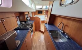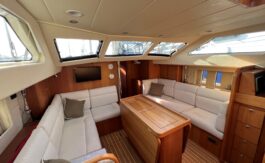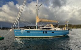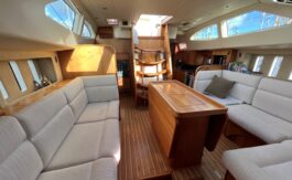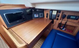 The flexible sail plan, secure cockpit, generator, water maker, wind & solar power offer serious offshore capability. The superb living accommodation and a lifting keel also make her ideal for coastal cruising.