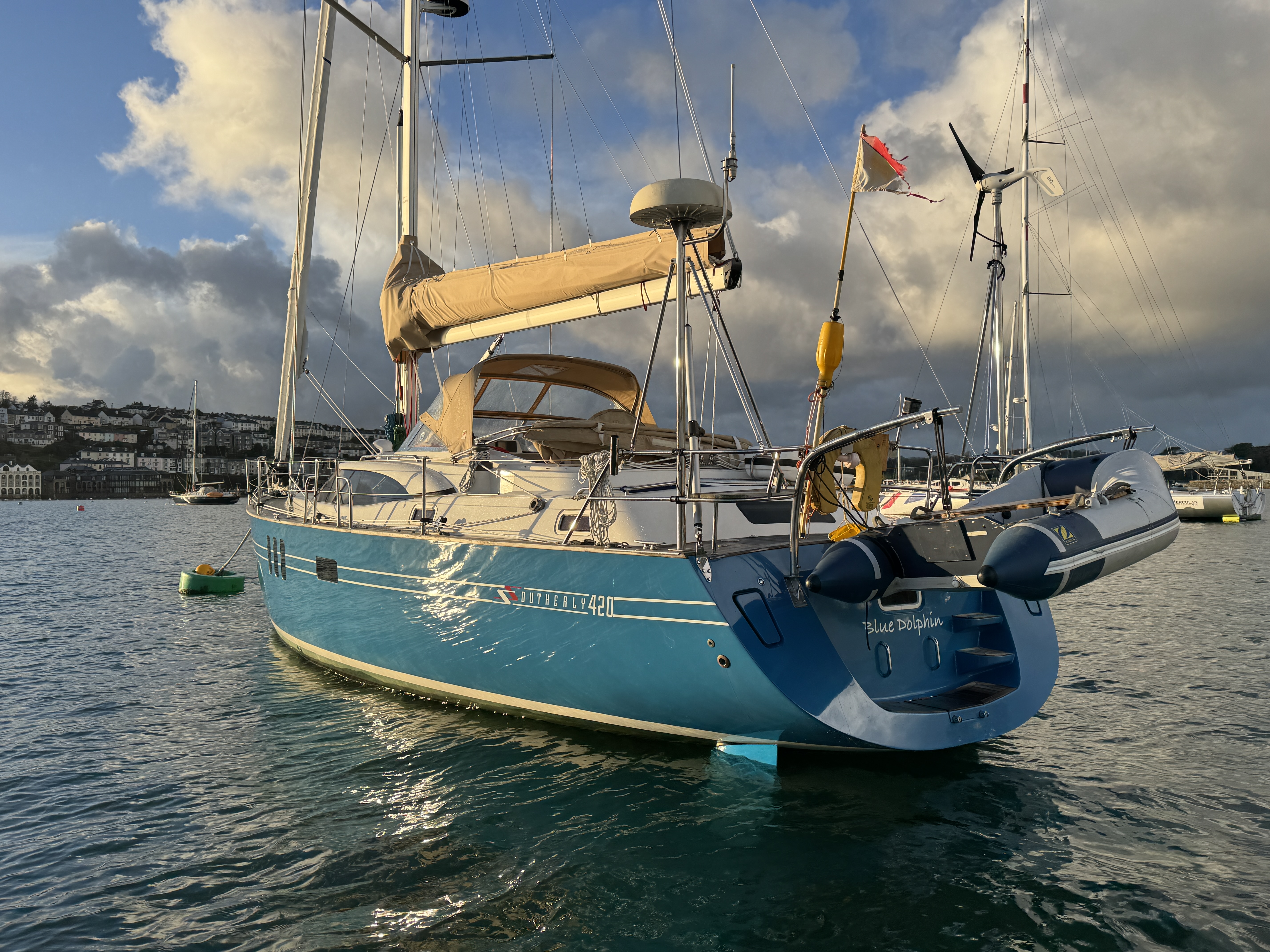 ‘Blue Dolphin’ is one of just a few Southerly 420 cruising yachts built by Northshore. This fine example offers outstanding sailing performance with easy handling by just two people from the centre cockpit. The spacious interior is fitted out to a very high standard and comes with many extras, to facilitate extended voyaging.