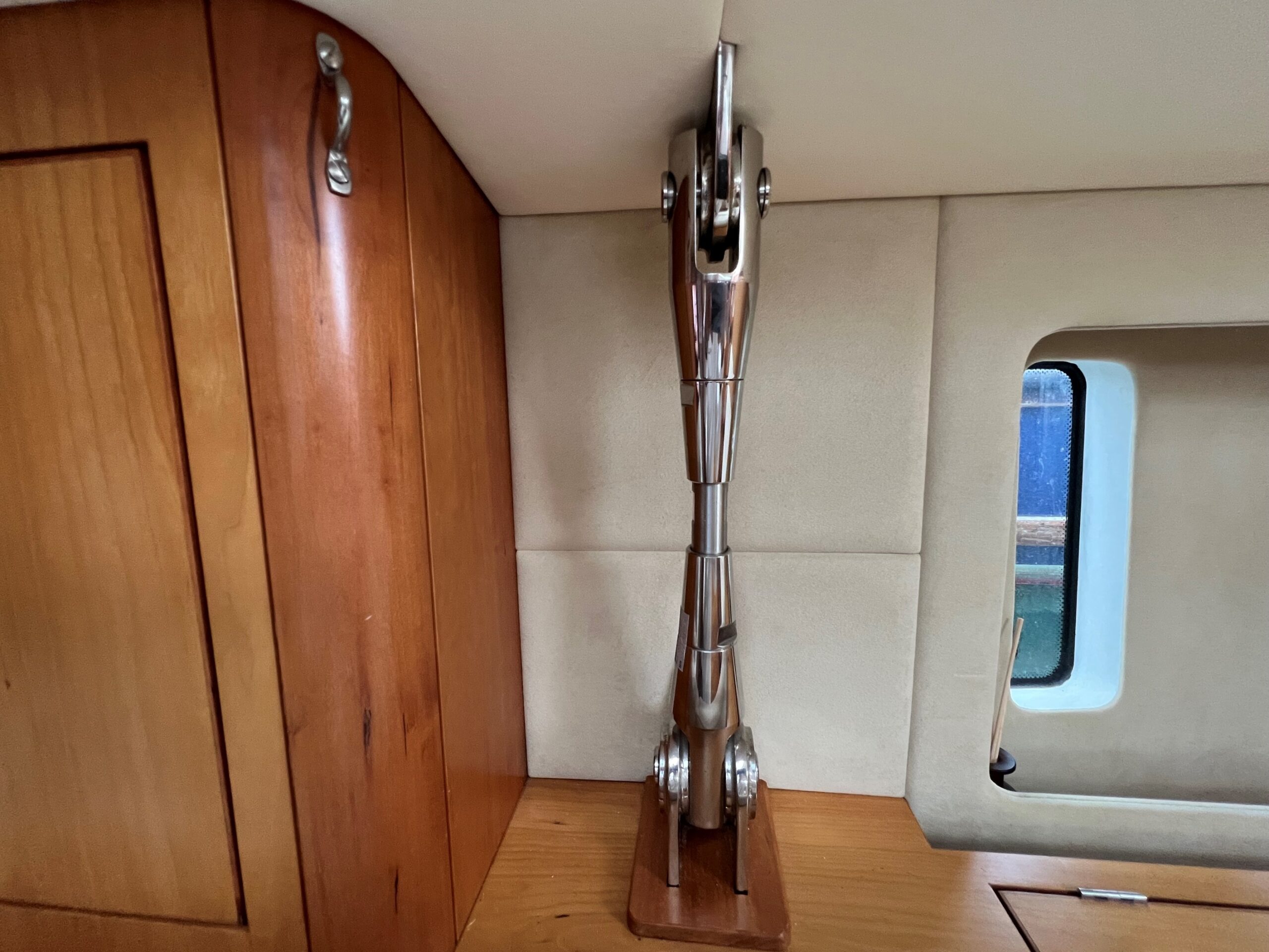 Aluminium spinnaker pole (2025), vertical mast stowage with topping lift and down haul