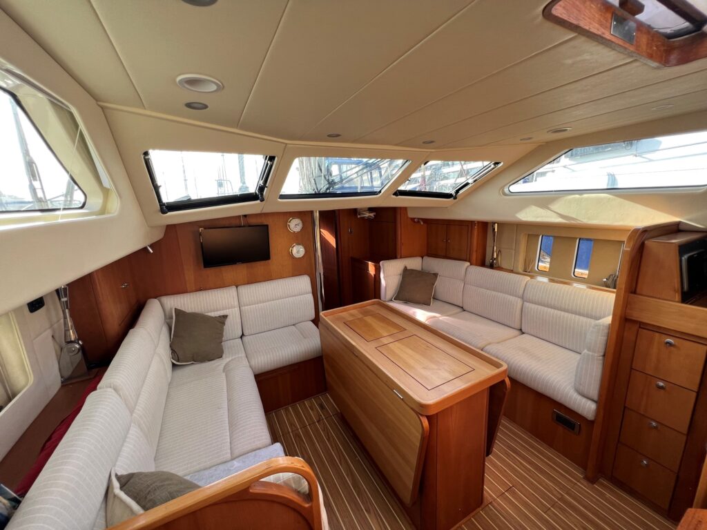 Large saloon seating area provides comfortable dining for six