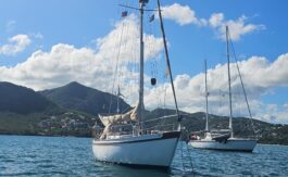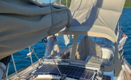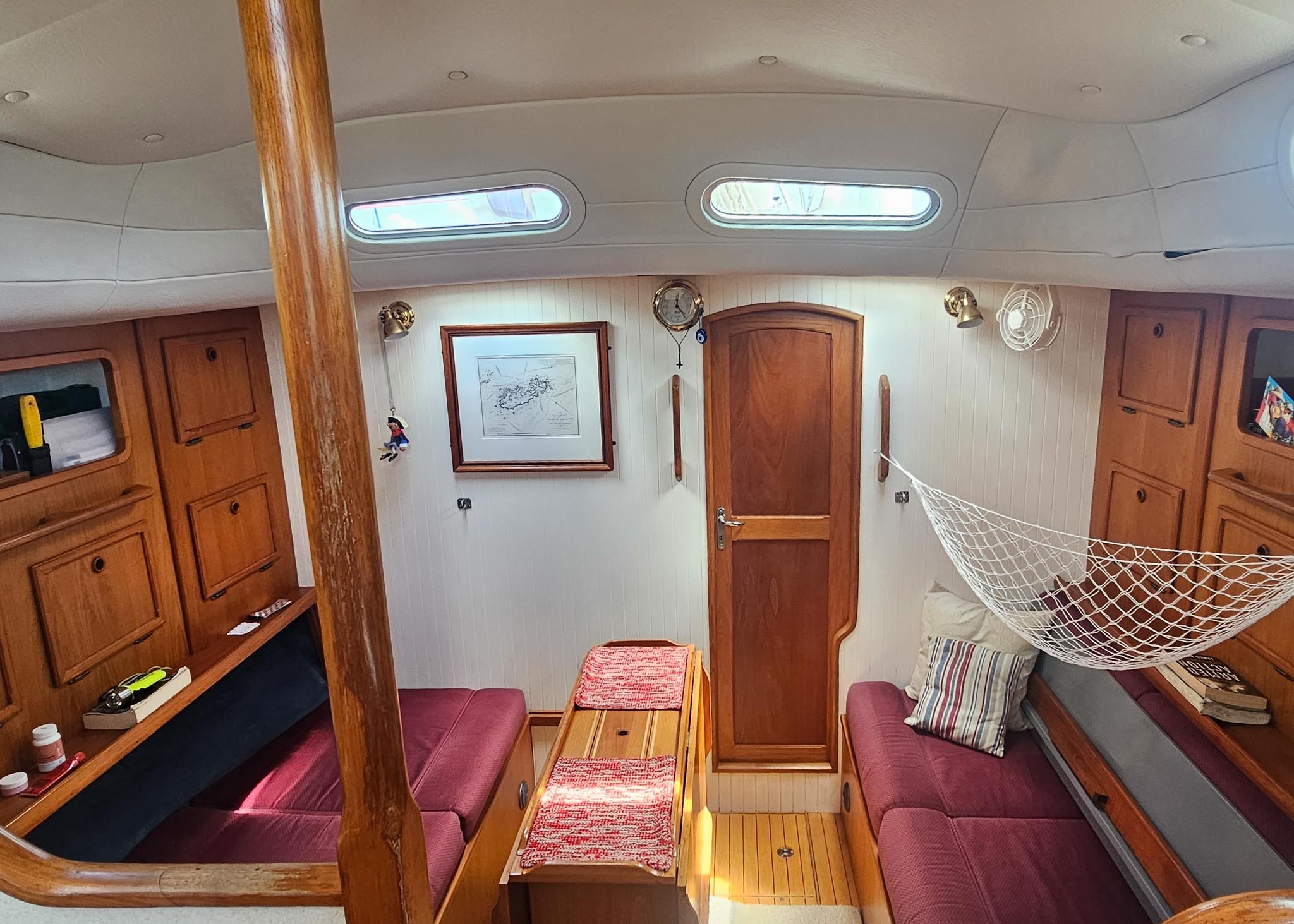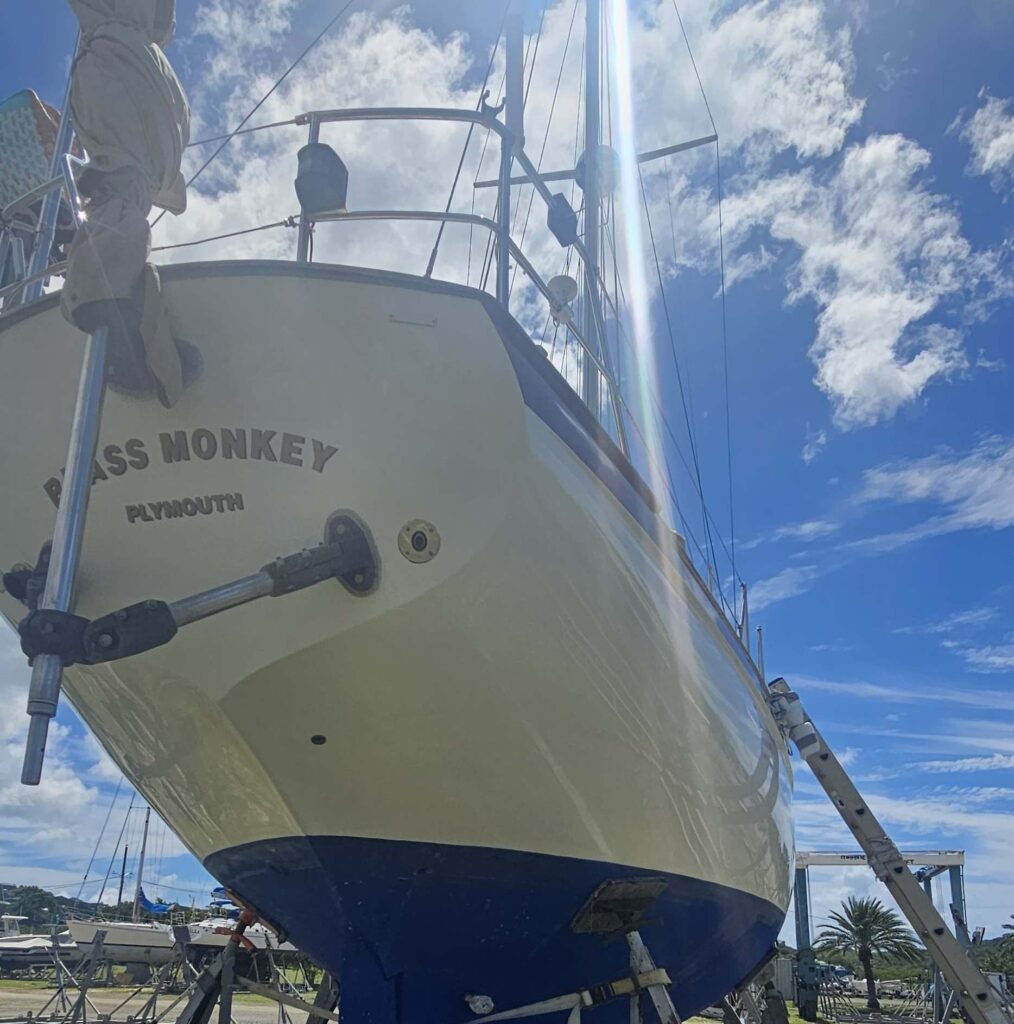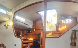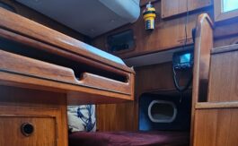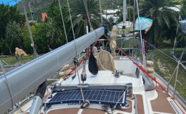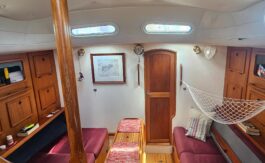 This particular vessel, ‘Brass Monkey,’ is in pristine condition and fully equipped for blue water cruising. Recent upgrades include: New standing rigging, Raymarine Axiom Pro 9 at the helm, Raymarine Doppler radar, Hydrovane wind self-steering, Marlec wind generator, Flexi 50-watt solar panel with remote control at the nav station, new service and engine start batteries.