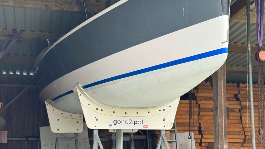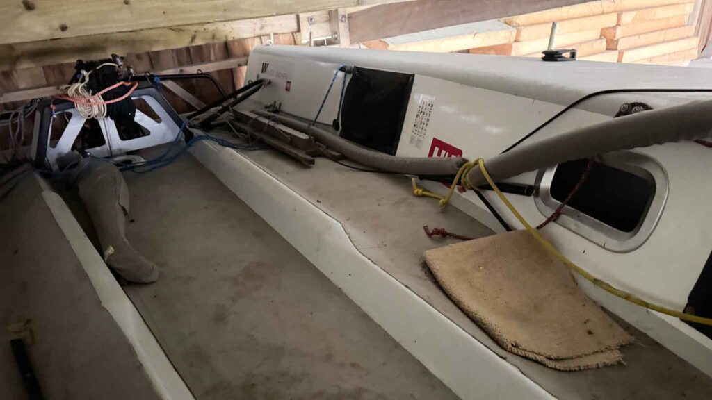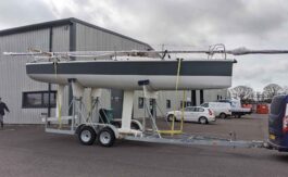 Located near Falmouth, on her trailer and under cover – she comes with a comprehensive sail wardrobe