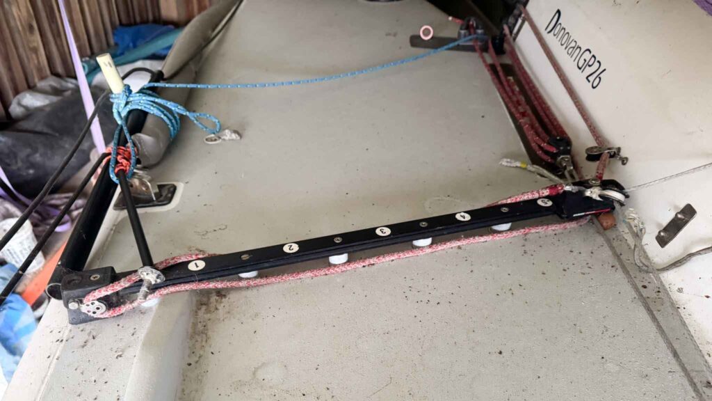 Custom mainsheet bridge aft for improved sheet control and crew ergonomics