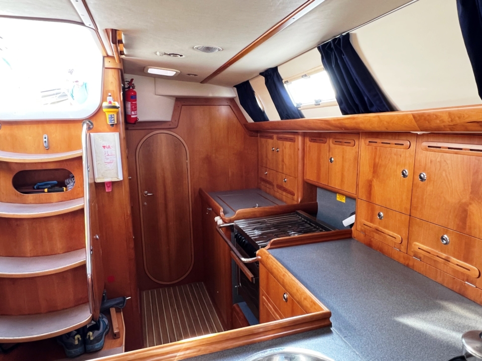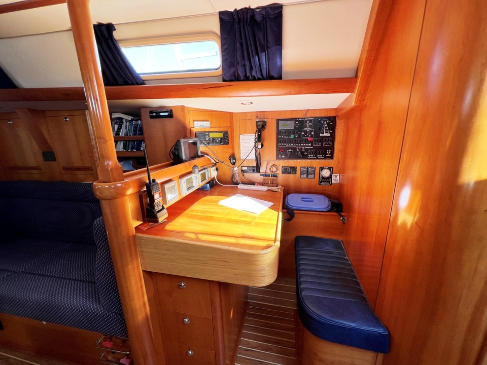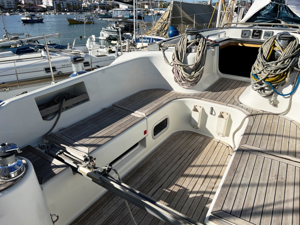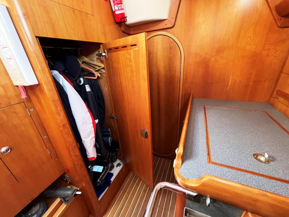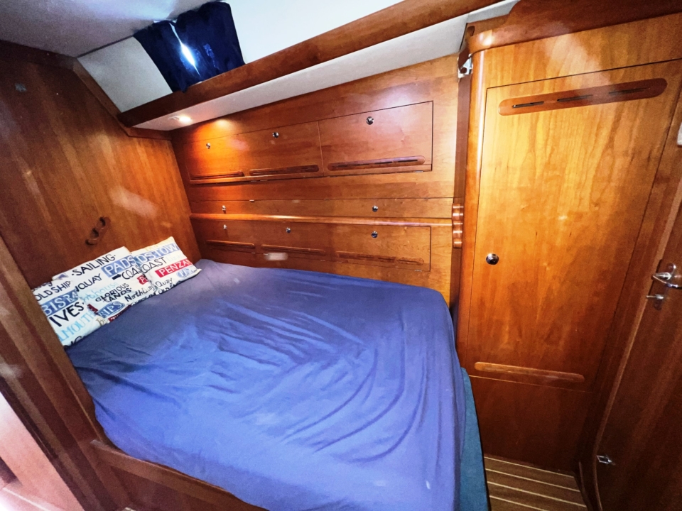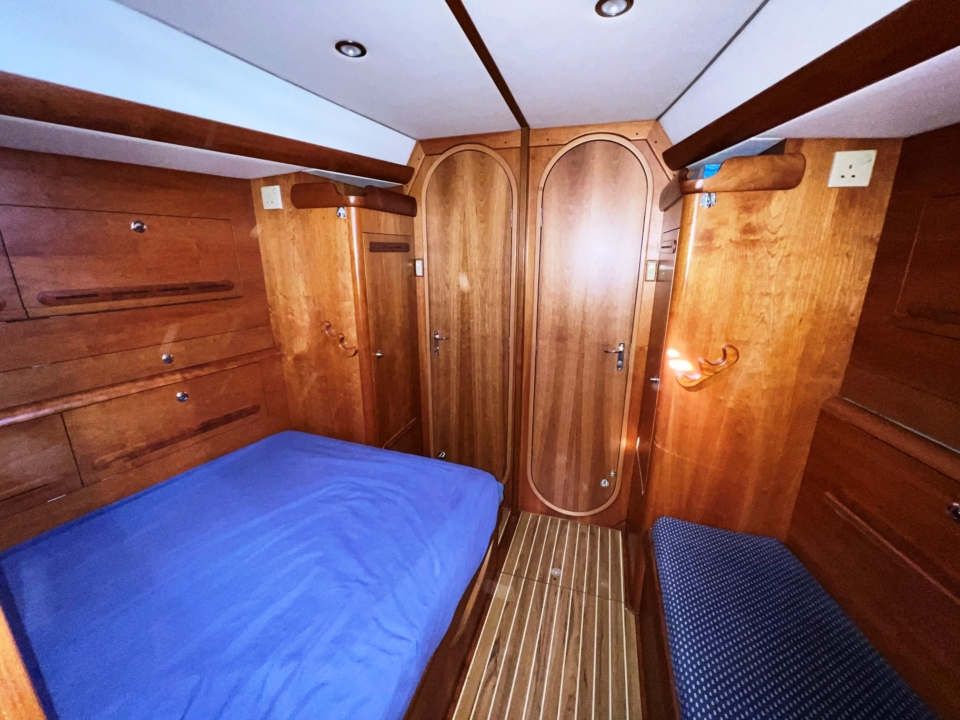 Bowman Starlight 46 Bowman Yachts Overview Price£139,950 ex. Year Built 2003 Model Starlight 46 Length 14.32 LyingLagos, Portugal Bowman Yachts Image Gallery Exterior Interior View 57 images Enquire about this Yacht Contact a Red Ensign broker to discuss a yacht or your plans in confidence. SPEAK TO BROKER Enquire about this boat | info@red-ensign.com Bowman Yachts - Starlight 46 URLThis field is for validation purposes and should be left unchanged.BoatName(Required) Name Email(Required) Message(Required) Specification Name Bowman Yachts Model Starlight 46 Builder Bowman Yachts Hull Material GRP Beam (m) 4.48 Draft (m) 2.18 Engine Nanni 5.280HE Diesel Engine HP 62 Overview Design and Capability The Bowman Starlight 46, built in 2003 and designed by Stephen Jones, was conceived as a fast and capable performance cruiser. She combines rewarding sailing performance with the exceptional build quality for which Bowman Yachts are known. As a result, she remains a highly regarded choice for serious cruising. Accommodation and Layout This yacht has been professionally remodelled, with the forward cabin converted into a large owner’s en-suite cabin. Below deck, the traditional layout is well suited to extended offshore cruising, with excellent storage throughout and a warm interior finished in cherry joinery. Accommodation includes two double cabins plus a dedicated workshop and utility cabin, which is a valuable addition for longer passages. In addition, 230V power is supplied to all cabins. Refit, Equipment, and Use A significant refit was completed in 2016, after which the yacht sailed to Portugal and has seen very little use since. Power is provided by a Nanni 5.280HE 62hp diesel engine. The yacht is also supplied with a new, unused 3D Tender 280 RIB, featuring Hypalon tubes and an aluminium double floor. Condition and Viewing Overall, this Bowman Starlight 46 presents as a well-sorted and capable cruising yacht. Because the major refit work has already been completed, she offers a straightforward ownership proposition. For further information or to arrange a viewing, please contact Simon at the Falmouth office on 01326 313143. Equipment and Information CONSTRUCTION Traditional GRP build from Bowman Yachts Fin Keel Blade rudder GRP decks and coachroof DECK EQUIPMENT & INVENTORY Crash bulkhead fitted aft of deck storage locker, which also houses the vertical lifting bow thruster and battery bank, provides storage for downwind sail, warps and kedge anchor. Rear cockpit lockers provide storage for outboard engine, warps, folding bicycles and canvas items. Two ventilated gas lockers provide storage for 4 gas bottles. Edson 2 x 40inch wheels – hide covered. Separate quadrants and steering cables to each wheel providing backup. Each wheel pedestal has Silva steering compass. 2 x 64ST Lewmar primary winches 2 x 54ST Lewmar halyard and sail control winches , I electric starboard side 2 x 48ST Lewmar secondary sheet winches 18 Lewmar clutches in total for all halyards and staysail sheets. Mainsheet 5:1 leading to Lewmar winch, with car on cockpit track with 4:1 controls and cleats All lines from the mast return to the cockpit under covering boards. Lewmar Genoa track with adjustment Aluminium toe rails Guardwires with gates port and starboard S/S handrailsStainless steel arch installed at stern to support 400W Victron solar array and dinghy tender storage/launching New 2016 Lofrans X3 electric anchor windlass, 60m calibrated chain and 40m anchor warp, 33Kg Rocna anchor and anchor snubber. All unused system installation. 2016 upgrades: Cockpit tent, connecting to the sprayhood Aft bimini, integrated with the stern arch Over boom Cockpit bimini, for use in harbour or at anchor. Covers for all deck hatches Heavy duty cockpit/deck cover to protect boat when out of commission. Bow roller re-engineered to self launch Rocna anchor and to fly asymmetric sails Pulpit modified to remove excess length to reduce marina berth costs. RIGGING & SAILS Selden cutter rig, aft swept spreaders, Schaeffer roller furler on forestay Selden Carbon spinnaker pole Selden Aluminium jockey pole Rigid kicker and twin Navtex hydraulic adjusters for backstay Spinnaker gear, inc guys and sheets All sail controls and halyards let aft to winches and clutches in cockpit Fully battened mainsail with ball bearing cars, slab reefing Yankee furling genoa in Vectran Hank-on staysail Asymmetric Spinnaker in snuffer In UK are additional sails available for collection Tri-radial spinnaker in snuffer Hank-on storm staysail Trysail New 2016 Stackpack system for mainsail stowage on the boom. TANKAGE Fuel Tanks 2 x 200L, total 400L, plus Emergency tank 25L Fresh Water Tanks 2 x 300L, total 600L Holding Tank 1 x 100L (unused) MACHINERY & ELECTRICS Engine: Nanni 5.280HE 62HP Diesel 5 cylinder, naturally aspirated Major engine overhaul 2016 -cooling system including new pump, heat exchanger and manifold removed and overhauled, and new exhaust -new injectors – new starter motor – new universal coupling – new engine panel – new Optima AGM coil starter battery – fuel supply system replaced with new pre-filters and pump – twin engine controls and cables to both steering positions, with switchover. – Generator overhaul – Speedseals added to both engine and generatorHurth HBW 250 gearbox Propellor: Flexofold folding 3 blades Whisperpower 3.5KW diesel AC generator Tohatsu 3.5HP 2 stroke outboard for tender. Victron Energy Phoenix 50A Combi battery charger and inverter 3 x AGM service batteries High current engine Amptech alternator with regulator AGM Engine battery AGM Generator battery Battery monitor Music system in saloon 240V AC distribution system to sockets throughout the yacht Also 2016 AGM battery bank located forward providing power to bowthruster and anchor windlass Victron DC to DC charger to charge new battery bank from the service batteries Victron 3 way FET splitter providing more efficient engine alternator charging Victro