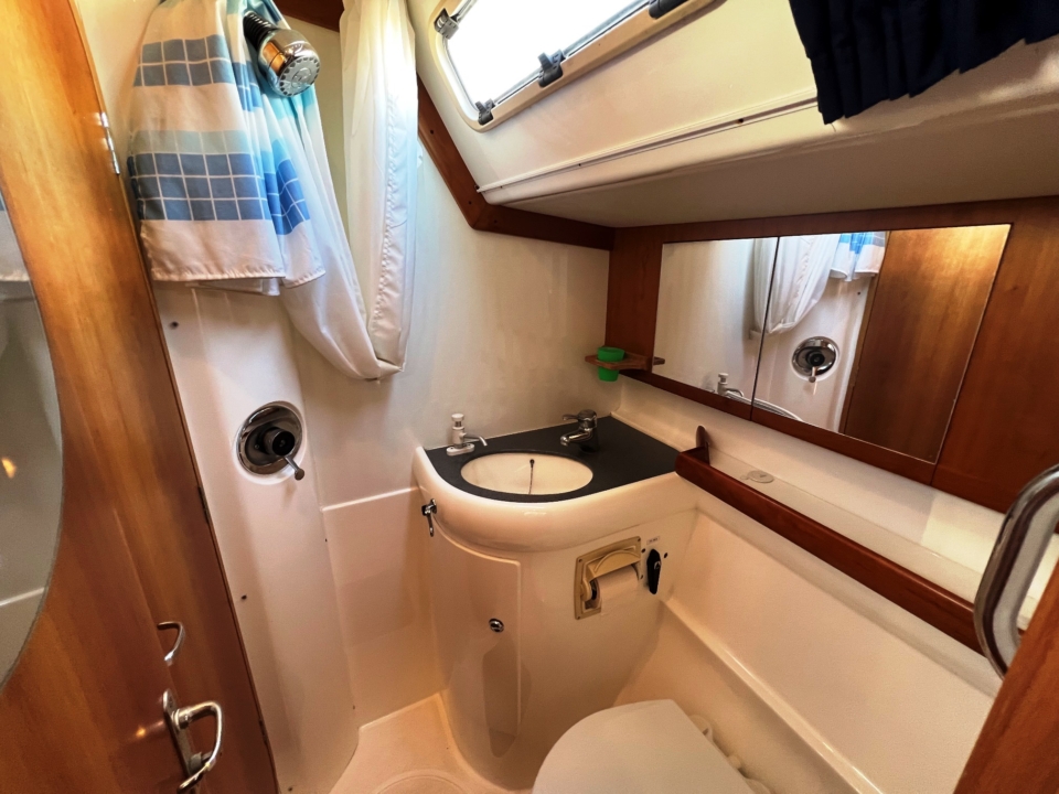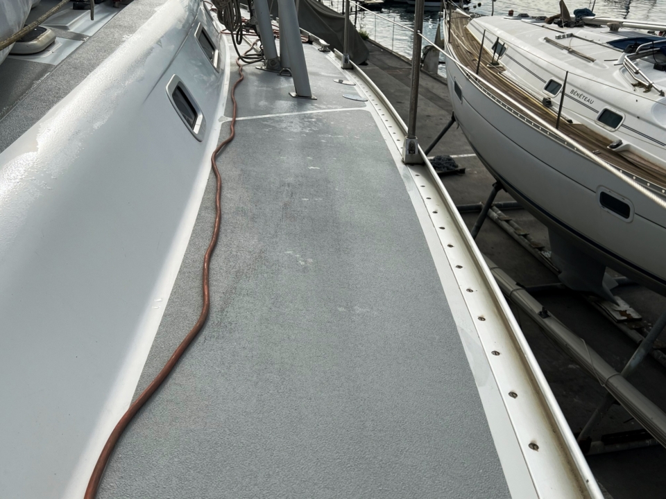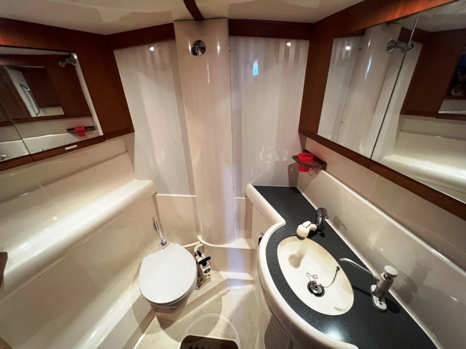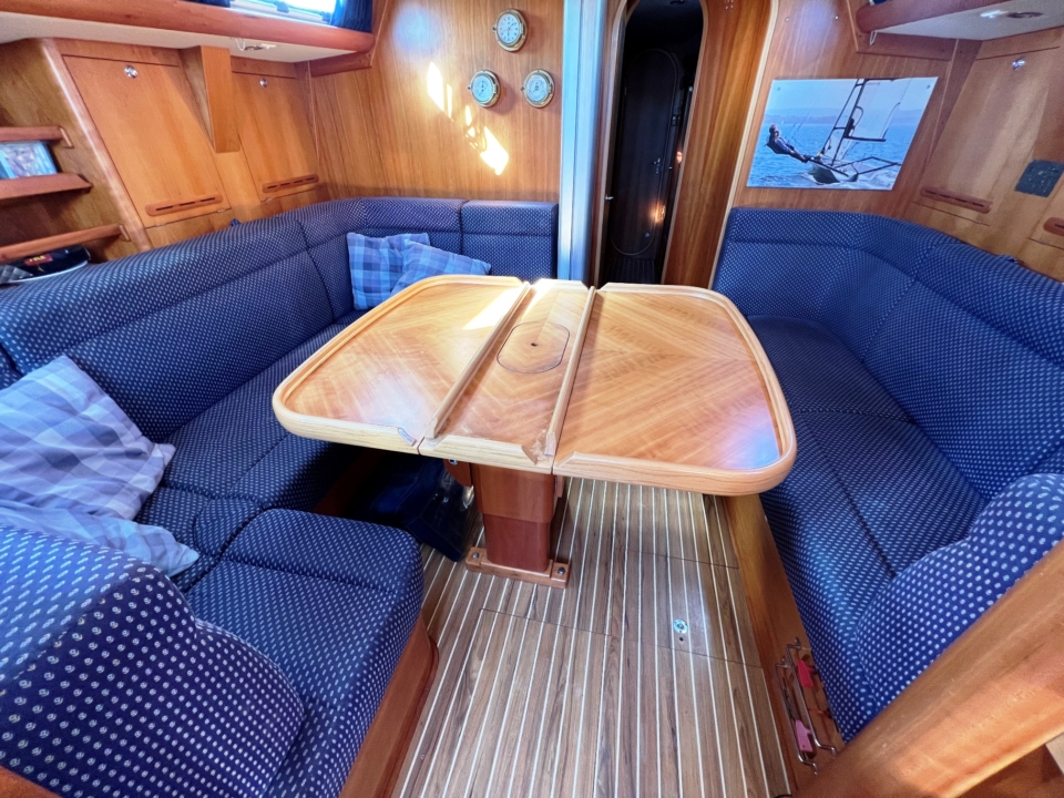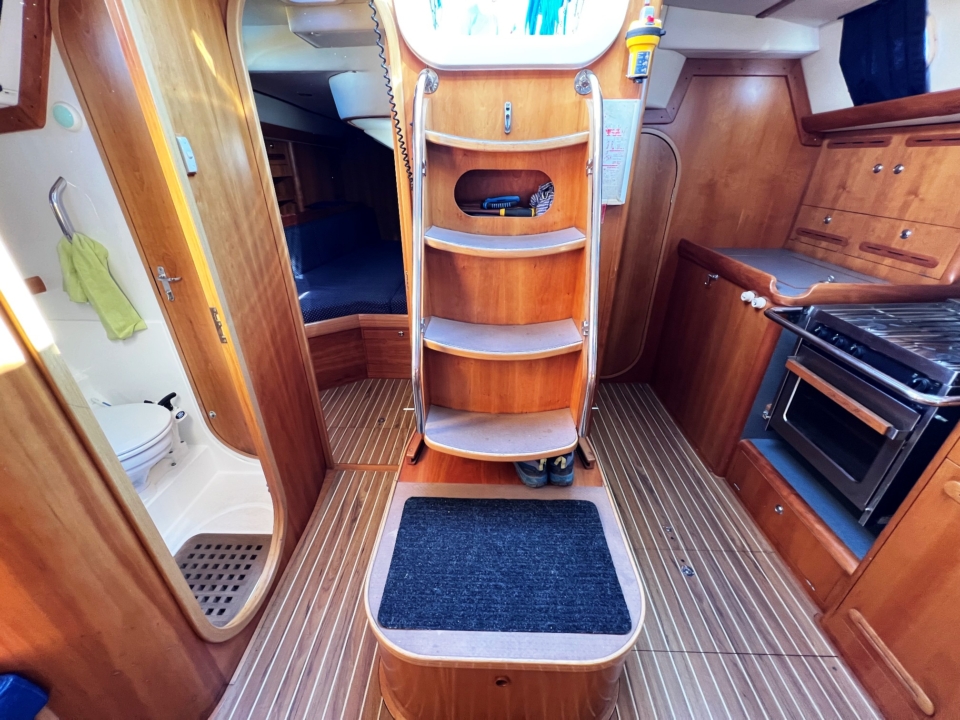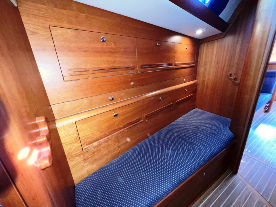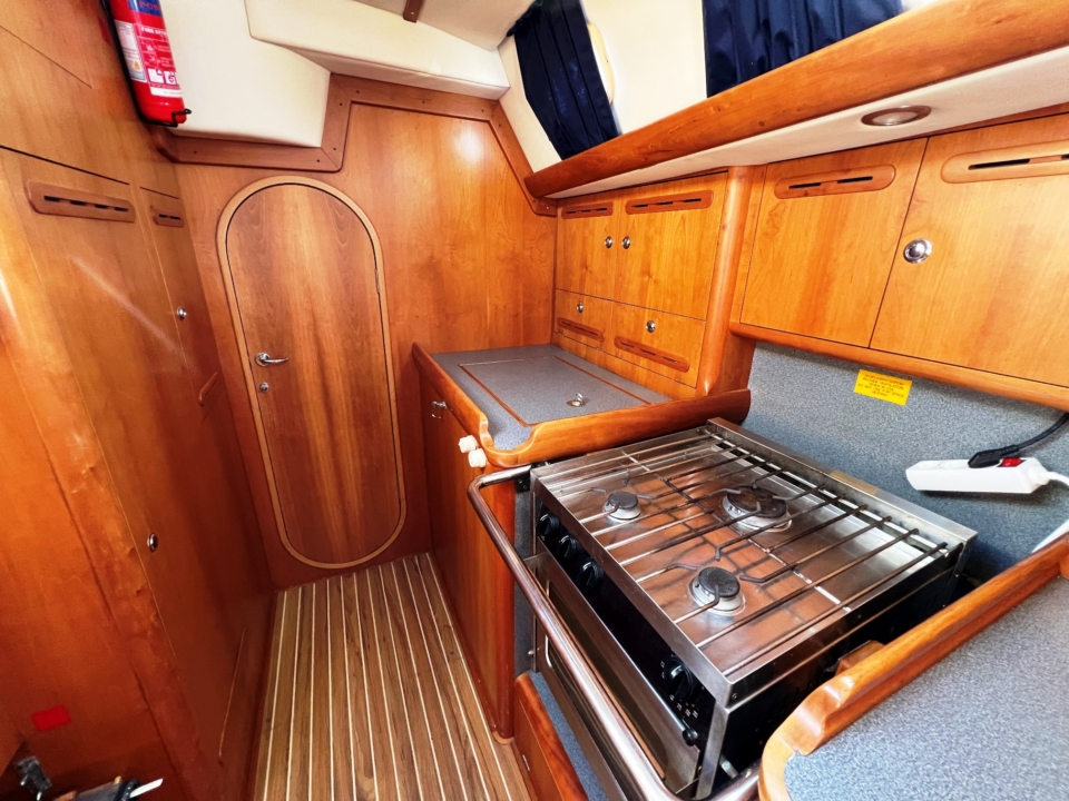 Bowman Starlight 46 Bowman Yachts Overview Price£139,950 ex. Year Built 2003 Model Starlight 46 Length 14.32 LyingLagos, Portugal Bowman Yachts Image Gallery Exterior Interior View 57 images Enquire about this Yacht Contact a Red Ensign broker to discuss a yacht or your plans in confidence. SPEAK TO BROKER Enquire about this boat | info@red-ensign.com Bowman Yachts - Starlight 46 URLThis field is for validation purposes and should be left unchanged.BoatName(Required) Name Email(Required) Message(Required) Specification Name Bowman Yachts Model Starlight 46 Builder Bowman Yachts Hull Material GRP Beam (m) 4.48 Draft (m) 2.18 Engine Nanni 5.280HE Diesel Engine HP 62 Overview Design and Capability The Bowman Starlight 46, built in 2003 and designed by Stephen Jones, was conceived as a fast and capable performance cruiser. She combines rewarding sailing performance with the exceptional build quality for which Bowman Yachts are known. As a result, she remains a highly regarded choice for serious cruising. Accommodation and Layout This yacht has been professionally remodelled, with the forward cabin converted into a large owner’s en-suite cabin. Below deck, the traditional layout is well suited to extended offshore cruising, with excellent storage throughout and a warm interior finished in cherry joinery. Accommodation includes two double cabins plus a dedicated workshop and utility cabin, which is a valuable addition for longer passages. In addition, 230V power is supplied to all cabins. Refit, Equipment, and Use A significant refit was completed in 2016, after which the yacht sailed to Portugal and has seen very little use since. Power is provided by a Nanni 5.280HE 62hp diesel engine. The yacht is also supplied with a new, unused 3D Tender 280 RIB, featuring Hypalon tubes and an aluminium double floor. Condition and Viewing Overall, this Bowman Starlight 46 presents as a well-sorted and capable cruising yacht. Because the major refit work has already been completed, she offers a straightforward ownership proposition. For further information or to arrange a viewing, please contact Simon at the Falmouth office on 01326 313143. Equipment and Information CONSTRUCTION Traditional GRP build from Bowman Yachts Fin Keel Blade rudder GRP decks and coachroof DECK EQUIPMENT & INVENTORY Crash bulkhead fitted aft of deck storage locker, which also houses the vertical lifting bow thruster and battery bank, provides storage for downwind sail, warps and kedge anchor. Rear cockpit lockers provide storage for outboard engine, warps, folding bicycles and canvas items. Two ventilated gas lockers provide storage for 4 gas bottles. Edson 2 x 40inch wheels – hide covered. Separate quadrants and steering cables to each wheel providing backup. Each wheel pedestal has Silva steering compass. 2 x 64ST Lewmar primary winches 2 x 54ST Lewmar halyard and sail control winches , I electric starboard side 2 x 48ST Lewmar secondary sheet winches 18 Lewmar clutches in total for all halyards and staysail sheets. Mainsheet 5:1 leading to Lewmar winch, with car on cockpit track with 4:1 controls and cleats All lines from the mast return to the cockpit under covering boards. Lewmar Genoa track with adjustment Aluminium toe rails Guardwires with gates port and starboard S/S handrailsStainless steel arch installed at stern to support 400W Victron solar array and dinghy tender storage/launching New 2016 Lofrans X3 electric anchor windlass, 60m calibrated chain and 40m anchor warp, 33Kg Rocna anchor and anchor snubber. All unused system installation. 2016 upgrades: Cockpit tent, connecting to the sprayhood Aft bimini, integrated with the stern arch Over boom Cockpit bimini, for use in harbour or at anchor. Covers for all deck hatches Heavy duty cockpit/deck cover to protect boat when out of commission. Bow roller re-engineered to self launch Rocna anchor and to fly asymmetric sails Pulpit modified to remove excess length to reduce marina berth costs. RIGGING & SAILS Selden cutter rig, aft swept spreaders, Schaeffer roller furler on forestay Selden Carbon spinnaker pole Selden Aluminium jockey pole Rigid kicker and twin Navtex hydraulic adjusters for backstay Spinnaker gear, inc guys and sheets All sail controls and halyards let aft to winches and clutches in cockpit Fully battened mainsail with ball bearing cars, slab reefing Yankee furling genoa in Vectran Hank-on staysail Asymmetric Spinnaker in snuffer In UK are additional sails available for collection Tri-radial spinnaker in snuffer Hank-on storm staysail Trysail New 2016 Stackpack system for mainsail stowage on the boom. TANKAGE Fuel Tanks 2 x 200L, total 400L, plus Emergency tank 25L Fresh Water Tanks 2 x 300L, total 600L Holding Tank 1 x 100L (unused) MACHINERY & ELECTRICS Engine: Nanni 5.280HE 62HP Diesel 5 cylinder, naturally aspirated Major engine overhaul 2016 -cooling system including new pump, heat exchanger and manifold removed and overhauled, and new exhaust -new injectors – new starter motor – new universal coupling – new engine panel – new Optima AGM coil starter battery – fuel supply system replaced with new pre-filters and pump – twin engine controls and cables to both steering positions, with switchover. – Generator overhaul – Speedseals added to both engine and generatorHurth HBW 250 gearbox Propellor: Flexofold folding 3 blades Whisperpower 3.5KW diesel AC generator Tohatsu 3.5HP 2 stroke outboard for tender. Victron Energy Phoenix 50A Combi battery charger and inverter 3 x AGM service batteries High current engine Amptech alternator with regulator AGM Engine battery AGM Generator battery Battery monitor Music system in saloon 240V AC distribution system to sockets throughout the yacht Also 2016 AGM battery bank located forward providing power to bowthruster and anchor windlass Victron DC to DC charger to charge new battery bank from the service batteries Victron 3 way FET splitter providing more efficient engine alternator charging Victro
