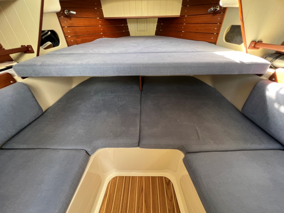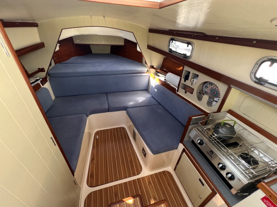 Cornish Crabbers 24 MKV Cornish Crabbers Overview Price£74,950 inc. Year Built 2020 Model 24MKV Length 8.6 Berths 1 LyingPlymouth, UK Cornish Crabbers Image Gallery Exterior Interior Panorama Video View 47 images Enquire about this Yacht Contact a Red Ensign broker to discuss a yacht or your plans in confidence. SPEAK TO BROKER Enquire about this boat Plymouth Office Plymouth Yacht Haven, Shaw Way, Mount Batten, Plymouth PL9 9XH 01752 260086 | info@red-ensign.com Cornish Crabbers - 24MKV BoatName(Required) Name Email(Required) Message(Required) Specification Name Cornish Crabbers Model 24MKV Builder Cornish Crabbers Designer Andrew Wolstenholne Hull Material GRP Beam (m) 2.66 Draft (m) 1.46 Displacement (kg) 2199 Engine Yanmar 2YM15 Engine HP 15 Engine Hours 150 Cabins 1 Berths 1 Overview Design and Pedigree The Cornish Crabber 24 MKV is a modern classic that builds on the timeless lines and proven seaworthiness of the original Crabber 24. In the MKV version, the design was refined to offer improved sailing performance and increased comfort, while still retaining the character the model is known for. As a result, she appeals to sailors who value tradition with modern usability. Condition and Usage ‘Ithaca’ is an immaculate 2020 example that has seen very light use from new. With just 150 hours on the engine, she presents in excellent condition throughout. Because of this low usage, she feels fresh, well cared for, and ready to enjoy. Keel and Cruising Flexibility A key feature of the Cornish Crabber 24 MKV is her lifting keel arrangement. This provides excellent flexibility, allowing the yacht to sail safely offshore while also opening up the option to explore shallow creeks, estuaries, and inlets. As a result, she suits a wide variety of cruising plans and locations. Sailing and Handling The Cornish Crabber 24 MKV offers easy and reassuring sailing performance. She is simple to handle, yet rewarding to sail, which suits both experienced sailors and those stepping up to cruising. The layout and balance make her comfortable in a variety of conditions. Cockpit and Deck Space On deck, the yacht benefits from a large cockpit with good storage lockers, creating a practical and sociable space. This makes day sailing relaxed and extended trips more comfortable, especially when sailing with family or friends. Accommodation and Comfort Below deck, accommodation is provided for up to four people, making the yacht surprisingly versatile for her size. Comfort is further enhanced by diesel heating, which extends the sailing season and adds to the sense of security and warmth aboard. Navigation and Equipment The yacht is fitted with a tiller pilot and an integrated Raymarine navigation system, which supports straightforward coastal cruising. Together, these systems make passage planning and short-handed sailing easier and more enjoyable. Viewing and Contact Overall, this Cornish Crabber 24 MKV represents a well-specified and lightly used example of a highly regarded design. For further information or to arrange a viewing, please contact Paul in the Plymouth office on 01752 260086. Equipment and Information Construction Design by Andrew Wolstenholme GRP Hull, deck & Superstructure Molded non-slip deck panels Lifting galvanised centreboard Coppercoat antifouling Laminated marine plywood rudder Displacement 2,250KG Engine, Stern Gear & Propulsion Yanmar 2YM15 diesel engine 14HP Mechanical marine gearbox Shaft drive to three bladed propeller Rope cutter Single lever throttle / shift 150 engine hours Cruising speed – 5 knots 43 litre fuel tank Deck Equipment 9KG Plough anchor with galvanised chain & warp Stainless steel mooring cleats 2 x Antal self tailing winches 2 x Antal W8 halyard winches Sprayhood Mainsail cover Stainless steel boarding ladder Throwing line Horseshoe life ring Fenders & warps Boathook Ensign jack staff Systems Pressurised hot & cold water 100 litre water tank Water heated by engine calorifier and immersion heater 2 x 70AH 12v Batteries Charged by 125A engine alternator Solar panel 19.6v 5W trickle charger 12V accessory outlet with USB adaptor Shore power Battery charger 2 x three pin UK socket Eberspacher blown air diesel heater with thermostatic control Manual bilge pump Electric bilge pump with alarm Analogue gauges for fuel/water/holding tanks Navigation Plastimo bulkhead compass Raymarine Axiom 7 touchscreen plotter Raymarine AIS Raymarine i50 display (log, speed, depth) Raymarine ST2000+ Tillerpilot Raymarine Ray53 DSC VHF radio LED navigation lights Rig & Sails Gaff rigged cutter Selden Carbon main mast Sitka spruce spars and bowsprit Genoa and bowsprit furlers by Aero Luff Spars Slab reefing mainsail with two reefs Single point reefing from cockpit All lines led aft to cockpit via Spinlock clutches Selden mainsheet traveller Fairlead tracks for both jib and staysail Mainsail Jib with UV protection Staysail with UV protection Accommodation FORECABIN Double vee berth forward, elevated above settee level 2 cave lockers Overhead hatch to deck SALOON 2 settee berths with storage below and behind U shaped seating Removeable table 2 large stirage areas with fiddles Electrical distribution panel 3 opening port hatches GALLEY Stanless steel Neptune 4500 gas cooker with grill Stainless steel sink with hot and cold mixer Crockery storage Storage below sink/cooker and behind cooker HEADS Jabsco sea toilet 28 litre holding tank with discharge pump and deck suction outlet Stainless steel basin with hot & cold mixer/shower and storage below Opening port hatch Broker's Comments The Cornish Crabber 24 MKV is a joy to sail, and ‘Freya’ is a really attractive example. She feels light, easy, and confidence-inspiring, with the lifting keel adding huge versatility to where and how you can cruise. The recent electronics and solar setup show that she has been sensibly upgraded for real use, rather than just cosmetic appeal. Lightly used and ready to go, she’s the kind of boat you can ste