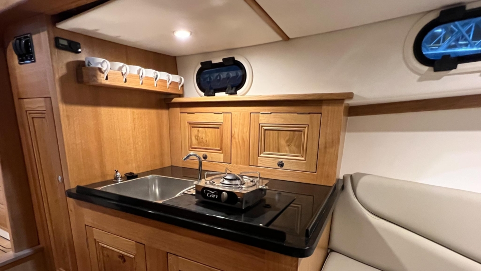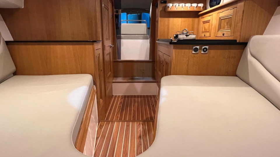 Duchy 27 Cockwells Overview Price£245,000 inc. Year Built 2024 Model Duchy 27 Length 8.2 Berths 2 LyingPlymouth, UK Cockwells Image Gallery Exterior Interior View 32 images Enquire about this Yacht Contact a Red Ensign broker to discuss a yacht or your plans in confidence. SPEAK TO BROKER Enquire about this boat Plymouth Office Plymouth Yacht Haven, Shaw Way, Mount Batten, Plymouth PL9 9XH 01752 260086 | info@red-ensign.com Cockwells - Duchy 27 BoatName(Required) Name Email(Required) Message(Required) Specification Name Cockwells Model Duchy 27 Builder Cockwells Designer Andrew Wolstenhome Hull Material grp Beam (m) 2.72 Draft (m) 0.67 Displacement (kg) 32500 Engine Nanni T4 Diesel Engine HP 200 Engine Hours 64 Cabins 1 Berths 2 Overview Design and Character The Duchy 27 is a distinctive motor yacht that blends classic styling with modern engineering. Designed by Andrew Wolstenholme, she offers confident handling and excellent seakeeping, making her well suited to coastal cruising and longer open-water passages alike. Handling and Performance Underway, the Duchy 27 feels sure-footed and predictable. Power is supplied by a Nanni T4 diesel engine, delivering 200hp and refined cruising at around 18 knots. As a result, she is comfortable to run and easy to manage, even when conditions are less than ideal. Cockpit and Interior The design centres around a spacious cockpit and an ergonomic helm position, creating a sociable and practical layout. Below, the interior is well appointed and welcoming. A cockpit double-berth conversion extends overnight accommodation to four adults, which works well for short trips or weekends away. Ownership and Condition ‘Rascal’ was delivered new in 2024 and has seen very light use by one experienced owner. She has been carefully looked after and is currently stored ashore, undercover, protected from winter weather. As a result, she presents in excellent condition throughout. Location and Viewing For further information or to arrange a viewing, please contact Paul in the Plymouth office on 01752 260086. Equipment and Information Construction Duchy navy blue GRP hull White superstructure Walk-through transom Bathing platform Iroko capping rails EVO synthetic teak decking Sunbrella upholstery Engine, Stern Gear & Propulsion Nanni T4 diesel engine Excellent engine access Shaft drive Ambassador rope cutter 205HP 65 engine hours Bow thruster Deck Equipment Electric windlass with helm controls and deck switches 10kg stainless steel Bruce anchor 30M galvanised chain Whale twist deck shower Chrome Jabsco search light Refrigerator with icebox Mooring lines & fenders Swimming ladder Cockpit enclosure with roll-up windows Inflatable dinghy Bird Scarer Tonneau cover Shore power cable Toolset Systems & Navigation Pressurised hot and cold water Eberspächer diesel heating system 240V Shore power 12V DC system Batteries for engine, domestic, bow thruster and windlass Batteries charged by engine alternator or 240v charger Trickle charge via 2 x solar panel Raymarine chart plotter at helm station Integrated AIS Raymarine DSC VHF radio Accommodation High quality joinery throughout with cream leather interior and exterior upholstery V-Shaped seating in forward cabin, converts to double berth Galley to port with single burner gas hob and sink, cupboards and drawer Enclosed heads compartment to starboard with wash basin, sit-down shower and electric toilet Spacious semi-enclosed wheelhouse with good all-round visibility, twin rooflights and lighting Four opening portholes and three opening hatches Adjustable helm seat and navigator/companion seat Spacious cockpit with upholstered bench seating aft and fore/aft seating on engine box Engine box backrest with stainless steel grab handle Double berth conversion to cockpit Walk-through transom leading to bathing platform and swimming ladder Crockery in custom stowage Cutlery in custom stowage Broker's Comments This is a cracking little motor boat. She feels solid, well balanced, and very easy to drive, which is exactly what you want if you’re heading along the coast or popping across an open stretch of water. The cockpit works brilliantly, the helm position is spot on, and she’s got just enough accommodation to make weekends away comfortable without feeling cramped. Being a 2024 boat that’s been lightly used and kept undercover really shows. If you’re after a smart, well-built cruiser that you can enjoy straight away, Rascal is a lovely example. DISCLAIMER The Company offers the details of this vessel in good faith but cannot guarantee or warrant the accuracy of this information nor warrant the condition of the vessel. A buyer should instruct his agents, or his surveyors, to investigate such details as the buyer desires validated. This vessel is offered subject to prior sale, price change, or withdrawal without notice. Explore more yachts for sale Bowman 40 £117,500 inc. View listing New listing Jeanneau Sun Odyssey 439 £135,000 inc. View listing Dufour 32 Classic £29,500 inc. View listing Heard 28 £24,000 inc. View listing Page 1 Page 2 Page 3 … Page 15 Next »
