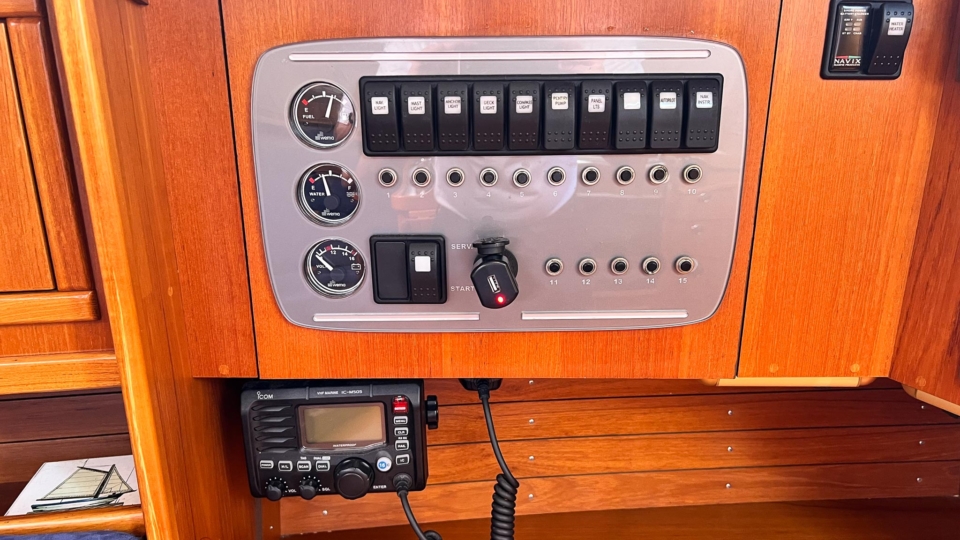 • Main battery switches under main companionway