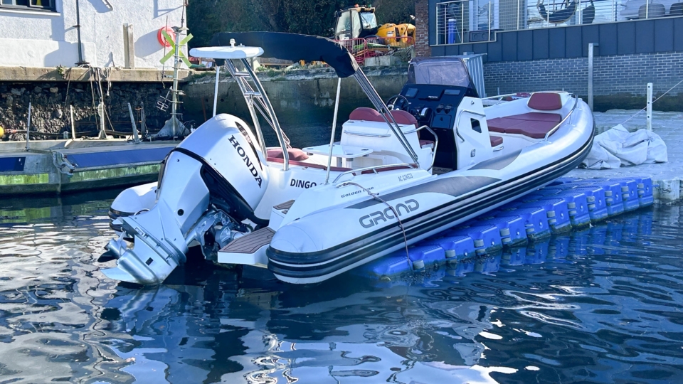 Grand 750 Rib Grand Boats Overview Price£54,950 inc. Year Built 2022 Model Goldenline 750 Length 7.5 LyingFalmouth, UK Grand Boats Image Gallery Exterior View 20 images Enquire about this Yacht Contact a Red Ensign broker to discuss a yacht or your plans in confidence. SPEAK TO BROKER Enquire about this boat Falmouth Office Port Pendennis Marina, Challenger Quay, Falmouth TR11 3YL 01326 313143 | info@red-ensign.com Grand Boats - Goldenline 750 BoatName(Required) Name Email(Required) Message(Required) Specification Name Grand Boats Model Goldenline 750 Builder Grand Boats Designer Grand Boats Hull Material GRP, hypalon Beam (m) 2.85 Draft (m) 0.88 Engine Honda 250 Engine HP 250 Engine Hours 350 Overview Design and Build The Grand Golden Line G750 is a premium RIB, built in Ukraine by Grand Boats, a builder known for combining seaworthy hull design with a high-quality, luxurious finish. The G750 sits at the top end of the Golden Line range and is designed to deliver comfort, performance, and confidence offshore. Hull and Classification This model is CE Category B rated, meaning she is designed to operate safely in winds up to 40 knots and waves up to 4 metres, within 200 miles of the shoreline. As a result, she offers genuine offshore capability rather than being limited to fair-weather use. Layout and Seating ‘Dingo’ offers a very sociable layout, with comfortable seating for six and a maximum capacity of up to thirteen. The presentation is particularly smart, with light grey Hypalon tubes, red upholstery, and synthetic teak flooring, creating a striking and modern look. Engine and Performance Power is provided by a Honda BF250 outboard, which has been well maintained and shows approximately 360 hours. This setup delivers strong performance, with top speeds of up to 40 knots, while remaining smooth and predictable at cruising speeds. Condition and Storage The boat has been stored out of the water at all times and kept under a full cover, which shows clearly in her condition. As a result, she presents as new and is offered ready for immediate use. Location and Viewing The boat’s current location can be provided on request. Please call us for further information or to arrange a viewing. Equipment and Information Engineering Honda BF250 D XRU 360 Hours – regularly serviced 3 Bladed stainless prop Electronic throttles Hydraulic steering Honda digital tachometer displays 260 litre fuel tank Specification Deep V hull with keel protection band Self draining deck finished in Seadeck synthetic flooring Full Grand cover Bimini Stainless ski frame Bow step plate Lewmar stainless anchor windlass Stainless integrated anchor and chain Deep bow locker with upholstery on gas struts Stainless safety handrail Bow sundeck option Forward ‘suicide seat’ lifts to access large storage space and Thetford toilet Steering console with windshield Upgraded sports steering wheel Raymarine Element 9S chart plotter and fish finder Honda digital display Honda electro throttles with trim and tilt Fuel gauge Fusion marine RA670 stereo with speakers Cup holders 12v control panel with auto bilge, water pump, lights and horn Low level lighting Helm and navigators seating with storage aft and cup holders Seat bases also set to back rest U shaped aft bench seating with removable table Bench lifts to access large storage locker on gas struts Swim platform with stainless swimladder Deck shower Snipe double axle trailer. Broker's Comments This G750 is a seriously impressive RIB. She feels fast, stable, and very confidence-inspiring, even when you start pushing the pace. The hull works well offshore, and the Honda 250 gives plenty of punch without feeling strained. What really stands out is the condition, she’s been kept out of the water and covered, and it shows everywhere you look. The seating layout works brilliantly for family days, but she’s just as happy being driven properly. If you’re after a high-spec RIB that’s capable, good-looking, and genuinely fun to run, this one is hard to fault. DISCLAIMER The Company offers the details of this vessel in good faith but cannot guarantee or warrant the accuracy of this information nor warrant the condition of the vessel. A buyer should instruct his agents, or his surveyors, to investigate such details as the buyer desires validated. This vessel is offered subject to prior sale, price change, or withdrawal without notice. Explore more yachts for sale Bowman 40 £117,500 inc. View listing New listing Jeanneau Sun Odyssey 439 £135,000 inc. View listing Dufour 32 Classic £29,500 inc. View listing Heard 28 £24,000 inc. View listing Page 1 Page 2 Page 3 … Page 15 Next »