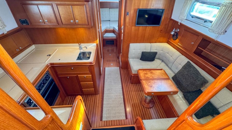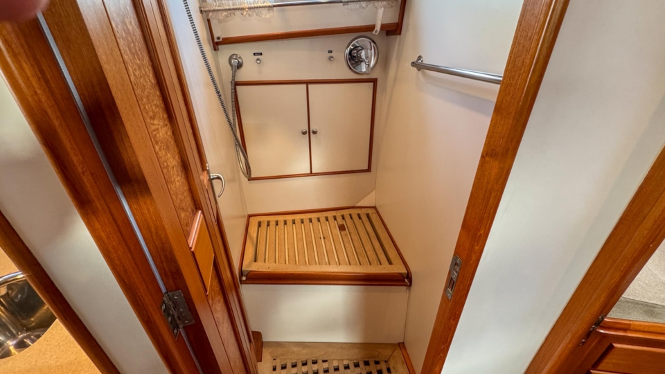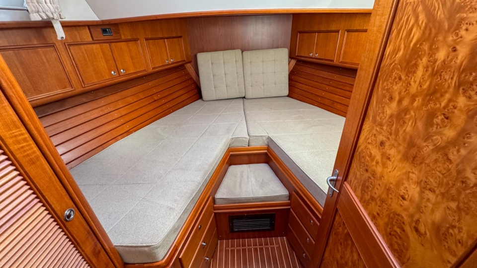 New listing Grand Banks Eastbay 38 Grand Banks Overview Price£169,000 inc. Year Built 2002 Model Eastbay 38 HX Length 11.56 Berths 4 LyingFalmouth, UK Grand Banks Image Gallery Exterior Interior Panorama Video View 36 images Enquire about this Yacht Contact a Red Ensign broker to discuss a yacht or your plans in confidence. SPEAK TO BROKER Enquire about this boat Falmouth Office Port Pendennis Marina, Challenger Quay, Falmouth TR11 3YL 01326 313143 | info@red-ensign.com Grand Banks - Eastbay 38 HX LinkedInThis field is for validation purposes and should be left unchanged.BoatName(Required) Name Email(Required) PhoneMessage(Required) Specification Manufacturer Grand Banks Model Eastbay 38 HX Designer C.Raymond Hunt Associates Hull Material GRP Beam (m) 4.01 Draft (m) 1.18 Displacement (kg) 11748 Engine Twin Caterpillar 3126 TA Engine HP 420 Engine Hours 800 Cabins 1 Berths 4 Overview Jazz is a stunning example of the Grand Banks Eastbay 38, a lovely combination of elegant downeast styling and effortless power from the twin Caterpillar 420’s. Designed by Raymond Hunt Associates, the deep V hull form offers stability and comfort even when hitting speeds of 30 knots, this is pure boating elegance at it’s finest. The Eastbay 38 offers excellent all round visibility from the pilothouse with removable aft screens leading to the sociable cockpit aft. Wide walkways with hand rails to the side and foredeck all add to the feeling of security when moving forward. The high build quality is evident throughout with detailed joinery in the pilothouse and interior as you would expect to see on any Grand Banks. The luxurious feel extends below is accentuated with wooden paneling, corian work tops and meticulously crafted teak joinery offset against the upgraded light upholstery. Originally commissioned in the UK for her rockstar owner, she has been well maintained into her 3rd ownership. A bow thruster and low rev mode on the throttles make maneuvers in the marina a pleasure. She has recently undergone her winter maintenance including engine service, antifoul application and hull polish. Jazz is currently in Mylor Yacht Harbour, a marina berth at this sought after destination may be available via separate negotiation. Please contact our Falmouth office for further information. Equipment and Information Construction Timeless GRAND BANKS lines Legendary Ray Hunt modified deep-V hull with a transom deadrise of 20 degrees Large aft deck with transom door Awlgrip painted hull Full teak decking – sidedecks & cockpit – refurbished 2021 Teak bathing platform Bow thruster – fitted 2022 – Sidepower progressive unit (can hold on station) Opening main windscreen window On Deck 35lbs CQR main anchor Electric anchor windlass – Maxwell Teak decks Large aft deck 4 x rod holders in gunwale top Transom door – easy access to pontoon from aft deck Transom shower Large ensign holder in the middle of the transom Bathing platform in teak Swim ladder Warps & fenders Stainless steel dorades Aft deck seating with storage under S/S grab rails on coachroof and under hardtop roof – very safe and easy walk around Helm Station and Seating Steering to starboard Stainless steel steering wheel Helm seating for 2 Ice maker & storage drawers underside ‘L’ shaped seating to port Storage under all seats Chart/storage – varnished locker on console Hatches for ventilation & light Engine access through sole floor Teak – removable table Canvas curtains between aft deck and pilot house Covers for console and companionway doors Engineering Caterpillar 3126TA 420hp x 2 Engine hours under 800 Professional service history Recent works: new hoses (2024), stbd heat exchanger (2024), start alarms (2024) port heat exchanger (2026) Shaft drive to 4 blade props ‘SLOW MODE’ – reduced RPM for tight handling Twindisc MG506 2:1 gearbox Electrical Mastervolt Whisper 6KVA generator European boat – all 240V Batteries – 2 x engine start 225Ah 1 x generator battery 2 x domestic batteries – 2024 2 x bow thruster batteries – 2024 2 x Victron smart chargers – 2024 Shore power and ring main system – 3 pin UK sockets 12V power sockets Outlets for charging at helm and fwd cabin Trim tabs AIRCON to accommodation Navigation Raymarine chartplotter/radar unit at helm AIS to chart plotter Raymarine DSC VHF – 2021 Raymarine multi display – Speed, depth log SIMRAD – Robertson AP22 Autopilot Steering compass Search light Horn – mounted on coachroof – in s/s Navigation lights Interior 4 Berths over fwd cabin and saloon AIRCON with reverse cycle Teak joinery in excellent condition throughout Holly and oak flooring in excellent condition Upgraded upholstery in cream/light green Stainless steel opening port holes Curtains throughout Forward Cabin Forward V berth with 2 generous singles Handing lockers with louvered doors Opening deck hatch Air conditioning outlet Storage lockers overhead, drawers under berths Heads to Starboard Manual Seaflow compact toilet – 2024 Corrian work tops on heads sink unit Separate shower unit to port – with teak seat – keeps the heads dry Saloon ‘U’ shaped seating to starboard Drop down leafed table to make another double TV Teak grab rails on roof Galley Large ‘U’ shaped galley to port Double sink unit Large front opening fridge – 12V Huge storage capability Princess gas oven with 3 burner hob Remote gas solenoid to gas bottles Corian work top Large storage in floor Microwave – built in DISCLAIMER The Company offers the details of this vessel in good faith but cannot guarantee or warrant the accuracy of this information nor warrant the condition of the vessel. A buyer should instruct his agents, or his surveyors, to investigate such details as the buyer desires validated. This vessel is offered subject to prior sale, price change, or withdrawal without notice. Explore more yachts for sale New listing Grand Banks Eastbay 38 £169,000 inc. View listing New listing EXCESS 14 £459,000 