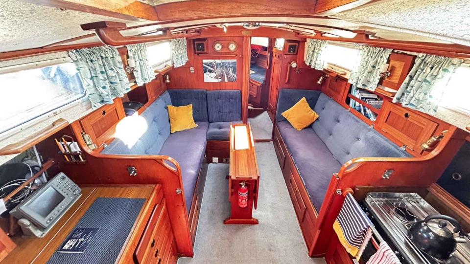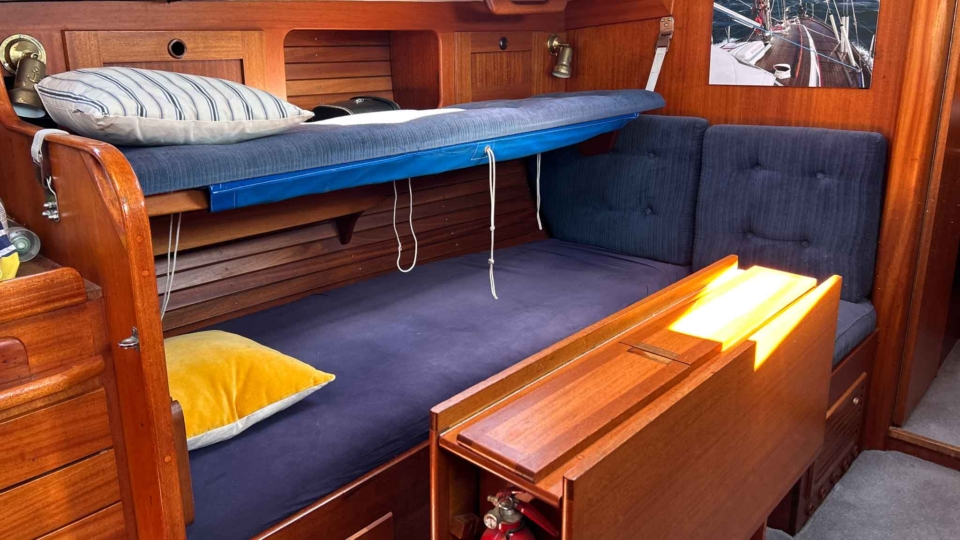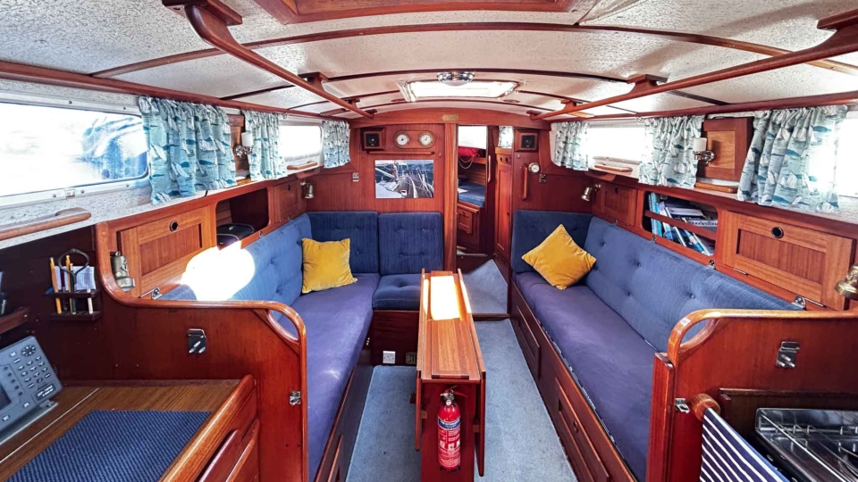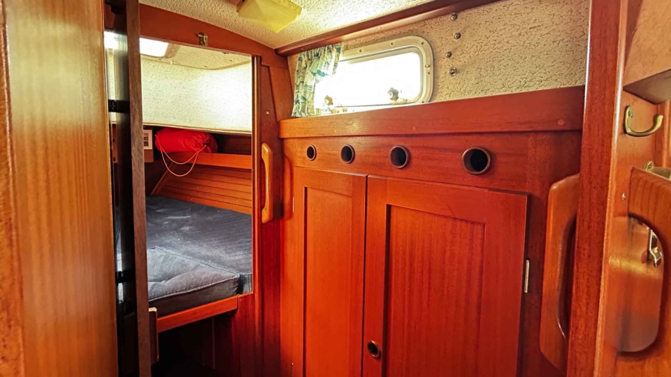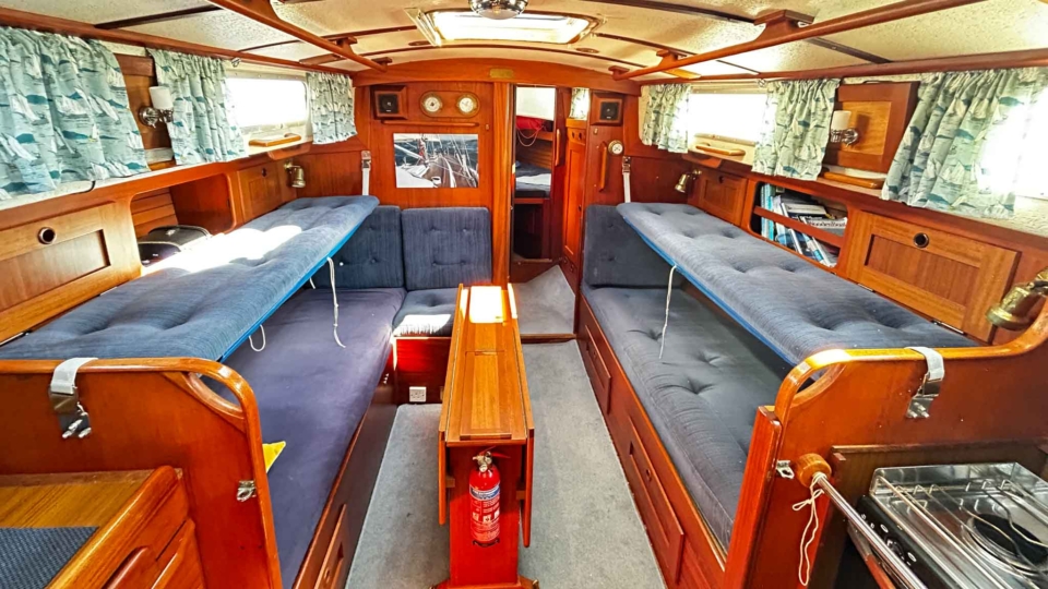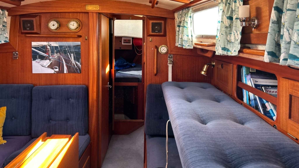 Hallberg-Rassy 94 Kutter Hallberg Rassy Overview Price£55,000 inc. Year Built 1987 Model 94 Kutter Length 9.4 Berths 6 LyingFowey, UK Hallberg Rassy Image Gallery Exterior Interior View 42 images Enquire about this Yacht Contact a Red Ensign broker to discuss a yacht or your plans in confidence. SPEAK TO BROKER Enquire about this boat | info@red-ensign.com Hallberg Rassy - 94 Kutter X/TwitterThis field is for validation purposes and should be left unchanged.BoatName(Required) Name Email(Required) Message(Required) Specification Name Hallberg Rassy Model 94 Kutter Builder Hallberg-Rassy Designer Olle Enderlein / Christoph Rassy Hull Material GRP Beam (m) 3.25 Draft (m) 1.15 Displacement (kg) 5200 Engine olvo Penta MD2040 Engine HP 39 Engine Hours 2000 Cabins 1 Berths 6 WC/Heads 1 Overview Design and Build The Hallberg-Rassy Kutter 94 “Issy of Etive” is a beautifully built and carefully maintained classic motorsailer. Designed around a robust long-keel Scandinavian hull, she reflects Hallberg-Rassy’s long-standing reputation for strength, quality, and seaworthiness. As a result, she offers reassuring handling and excellent seakeeping in a wide range of conditions. Ownership and Care Previously owned by a professional yacht surveyor, this Hallberg-Rassy Kutter 94 has benefited from consistent and knowledgeable care throughout her life. She has been regularly wintered ashore, which has helped preserve both structure and systems. Because of this, she presents as a yacht that has been maintained with long-term ownership in mind. Cockpit and Deck Safety On deck, “Issy of Etive” feels secure and confidence-inspiring. The pilothouse-protected cockpit, combined with additional handrails, safe cockpit access, and well-placed grab points, makes movement around the yacht straightforward and safe. This setup works well for sailors of all ages and experience levels. Systems and Equipment She is well equipped with a strong list of practical upgrades and modern systems. These include in-mast reefing, AIS, a bow thruster, electric windlass, liferaft, serviced sails with renewed sacrificial strips and leech lines, and a tricolour masthead light. Importantly, her decks have been professionally serviced, with all work supported by invoices. Interior Specification From new, this Hallberg-Rassy Kutter 94 was specified directly from the yard with several thoughtful additions. These include extra hatches, additional shelving by the cabin bunks, and increased fuel and water tankage. Together, these features improve comfort, practicality, and cruising range, which makes her particularly well suited to extended time aboard. Cruising Capability Overall, “Issy of Etive” offers a versatile blend of safety, comfort, and capability. She is equally at home on offshore passages or relaxed cruising in sheltered waters. This balance is one of the reasons the Hallberg-Rassy Kutter 94 remains so highly regarded. Condition and Location The yacht is currently ashore in St Winnow, Fowey, and is available for viewing by appointment. Please contact the Falmouth office on 01326 313143 for further details. Equipment and Information Construction Hull: Single-piece GRP, solid laminate, encapsulated iron ballast Keel: Full-length, long keel Rudder: Skeg-hung, full-depth Decks & Superstructure: GRP sandwich construction with 25 mm foam core; Teak-laid side decks and toerail, doghouse cockpit, integrated grab rails Safety & Access: Extra hand rails, cockpit grab points, additional railings from factory delivery, making boarding and moving around the yacht safe in all conditions Paint & Anti-fouling: 2-pack professional topside paint (2019), red antifouling below waterline Propulsion & Machinery Engine: Volvo Penta MD2040 diesel, 39 hp, 3-cylinder, naturally aspirated, indirectly cooled Gearbox: Mechanical, 2016 with Aquadrive thrust bearing drive Engine Hours: c. 2000hrs Propeller: Bronze, 3-blade fixed Exhaust: New exhaust elbow (2022) Bow Thruster: Vetus tunnel-mounted with helm controls Steering: Solimar cable system, alloy quadrant; emergency tiller fixed to rudder stock Cruising Speed: ~6 kts at 2.8 L/hr Tankage Fuel: 150L main stainless + auxiliary 80L Water: Twin tanks: 75L each + Tec-Tank 60L Holding: 55L Electrical Systems 12V DC / 230V AC onboard Domestic Batteries: 2 x 12 V 135 Ah Varta (2021) Engine Battery: 1 x 12 V 75 Ah Varta (2025) Charger: Mastervolt 230 V → 12 V, 15 A Monitoring: BEP Matrix battery monitor Shore Power: 16 A with galvanic isolator Navigation & Electronics AIS added Chart Plotters: B&G Vulcan V9 (2021), Furuno GP-1850 Raytheon Pathfinder R70, mast-mounted scanner ((radar is inoperative and the screen is removed but available) Instruments: B&G wind, depth, log (masthead transducer 2021) Autopilot: Raytheon ST6000+ with Raymarine course computer VHF: Icom IC-M330 DSC, Glomex splitter (2022) Compass: Magnetic pedestal-mounted Rig & Sails Deck-stepped masthead sloop rig, Selden single-spreader alloy mast Boom: New 2019 Standing Rigging: Replaced 2019 Running Rigging: Cruising Dyneema (2019) Furling: Furlex 200S genoa, in-mast mainsail reefing with mechanical lock Sails Serviced: Sacrificial strips and leech lines renewed by Sailshape (Fowey 2023) Winches: 4 x Lewmar 30 self-tailing Sails: Roller reefing mainsail, genoa, hank-on jib, cruising chute Deck & Equipment Teak-laid decks with toerail and solid capping rails Cockpit doghouse cover & winter cockpit cover Lofrans electric windlass with foot controls Bower anchor: 35 lb CQR, 40 m chain Avon inflatable dinghy with Yamaha outboard Stainless steel pulpit/ push-pit, stanchions with coated guard wires Boarding ladder transom-mounted Masthead tricolour light (2025) Performance & Handling Designer: Olle Enderlein / Christoph Rassy Finer entry than traditional Scandinavian double-enders for efficiency Firm bilges provide excellent form stability Tacks in as little as 6 knots of breeze Reefing only required from around 24 knots of wind Shallow dr