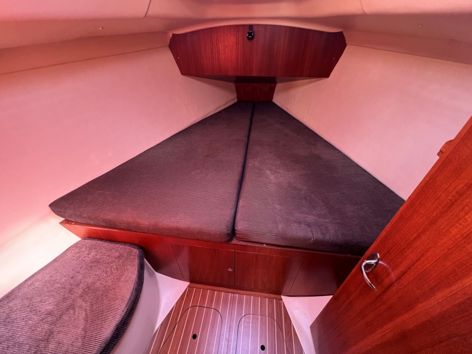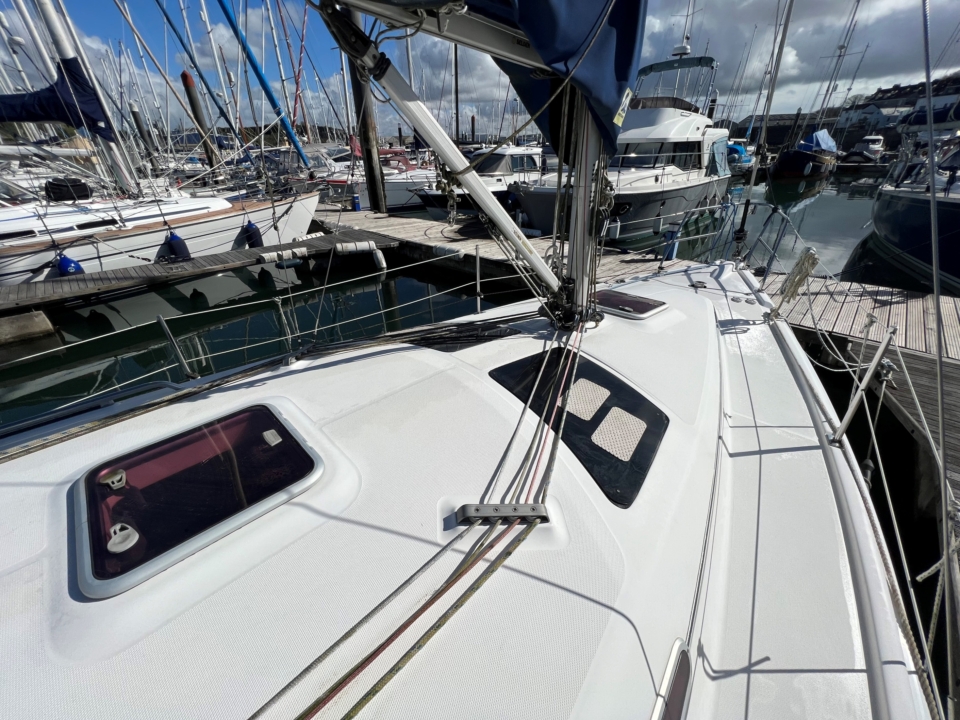 New listing Hunter Legend 33 Hunter Legend Overview Price£47,950 inc. Year Built 2004 Model Hunter Legend 33 Length 10.21 Berths 6 LyingPlymouth, UK Hunter Legend Image Gallery Exterior Interior Panorama View 32 images Enquire about this Yacht Contact a Red Ensign broker to discuss a yacht or your plans in confidence. SPEAK TO BROKER Enquire about this boat Plymouth Office Plymouth Yacht Haven, Shaw Way, Mount Batten, Plymouth PL9 9XH 01752 260086 | info@red-ensign.com Hunter Legend - Hunter Legend 33 FacebookThis field is for validation purposes and should be left unchanged.BoatName(Required) Name Email(Required) PhoneMessage(Required) Specification Manufacturer Hunter Legend Model Hunter Legend 33 Designer Glenn Henderson Hull Material GRP Beam (m) 3.51 Draft (m) 1.37 Displacement (kg) 5000 Engine Volvo MD2030 Engine HP 29 Cabins 2 Berths 6 WC/Heads 1 Fuel Capacity (l) 95 Water Capacity (l) 190 Overview Design and Build The Hunter Marine Legend 33 is a award winning cruising yacht, known for combining generous interior space with straightforward, user-friendly sailing characteristics. Designed with practicality in mind, it appeals to owners looking for a comfortable and accessible yacht. She’s ideally suited to family sailing in coastal waters but equally capable of safe offshore adventures. Hull and Construction The Hunter Legend 33 is built with a solid GRP hull and a fin keel configuration offering a good balance between stability, performance and shallow water access. GRP hull and deck construction Fin keel Spade rudder Wheel steering The hull form provides predictable handling under sail and power, making the boat well suited to a wide range of cruising conditions. Rig and Sailing Configuration The yacht is rigged as a fractional sloop with a focus on simplicity and ease of sail handling. The design features the trademark mainsheet arch, which ensures the cockpit is a safe and uncluttered space. Short handed sailing is easy, with all control lines led back to the cockpit, plus electric autopilot and electric windlass with dual controls. Fractional rig Furling headsail Mainsail with straightforward reefing system Lines led aft to cockpit This configuration makes the ‘Aries’ particularly approachable for those newer to sailing or stepping into ownership. Engine and Propulsion Auxiliary power is provided by a reliable inboard diesel engine, delivering efficient and dependable performance for harbour manoeuvring and coastal passages. Inboard diesel engine- Volvo MD2030 diesel 29hp Shaft drive configuration Simple and accessible engine installation The setup is designed for ease of maintenance and consistent reliability. Accommodation and Layout One of the key strengths of the Hunter Legend 33 is the amount of space available below deck. The generous accommodation sleeps six in two cabins plus the saloon. The interior feels open and bright, with a layout that works well for both short trips and longer stays. Forward double cabin Aft double cabin Spacious saloon with seating and dining area Galley with cooker, sink, and refrigeration Separate heads compartment with shower Condition and Ownership ‘Aries’ is a very nice example and has clearly been well cared for under current ownership. She offers excellent value, particularly for those seeking a balance between comfort and manageable size. She is ready to go and currently afloat at Plymouth yacht Haven. Location and Viewing The yacht is available for viewing by prior arrangement. For more details contact Paul in the Plymouth office on 01752 260086. Equipment and Information Construction GRP hull and superstructure Bilge keels Wheel steering (folding wheel) Synthetic teak to cockpit seats Trademark cockpit arch with mainsheet traveller Engine, Stern Gear & Propulsion Volvo MD2030 diesel engine 29hp Saildrive Three blade folding propeller Ambassador rope cutter Deck Equipment Delta anchor Galvanised chain & warp Lofrans electric anchor windlass controlled from foredeck or binnacle 2 x Lewmar 30ST primary winches 2 x Lewmar 16 ST coachroof winches Coachroof jammers Sprayhood Wheel cover Transom walk-through ‘Gin & Tonic’ seats in pushpit Swimming ladder Transom shower Warps & Fenders Horse shoe life ring Dan buoy MOB rescue sling Outboard bracket Emergency tiller Fishing rod bracket Folding cockpit table Flagstaff Kedge anchor with chain & warp Systems Pressurised hot & cold water Calorifier 190 litre fresh water tank Shore power Battery charger 2 x domestic batteries (120AH each) 1 x engine battery (120 AH) Sterling inverter Electric bilge pump Manual bilge pump Eberspacher diesel heater Portable solar panel Rutland wind generator and controller Electric gas solenoid 2 x Camping Gaz cylinders Navigation Raymarine autopilot with control head at binnacle Raymarine radar Raymarine C70 plotter at chart table Raymarine C80 plotter at binnacle Raymarine ST60 wind / multi-display instruments at binnacle Silva S15 DSC VHF radio Raymarine digital sounder and fishfinder Danforth steering compass Rig & Sails Fractional sloop rig Twin swept back spreaders Stainless steel standing rigging (2021) Harken furler Spinnaker pole Slab reefing mainsail Furling genoa Cruising chute with snuffer Storm jib Spray hood Stackpack & lazyjacks Accommodation Double cabin forward Large aft cabin Spacious saloon with double berth conversion Navigation station to starboard Head/shower to starboard Holding tank Practical sea-going galley to port Stainless steel sink Two burner cooker with oven & grill Microwave Front loading fridge Cool box Sony stereo TV with Freeview box Broker's Comments Aries is a boat that makes ownership feel straightforward. She's is easy to handle and offers a surprising amount of space for a yacht of this size. What tends to stand out straight away is the interior. It feels open and usable with a layout that works just as well for a weekend away as it does for longer stays on board. There is a sense of comfort here that is not alw