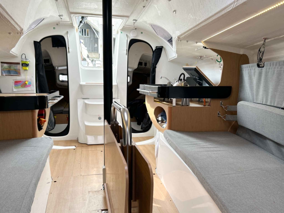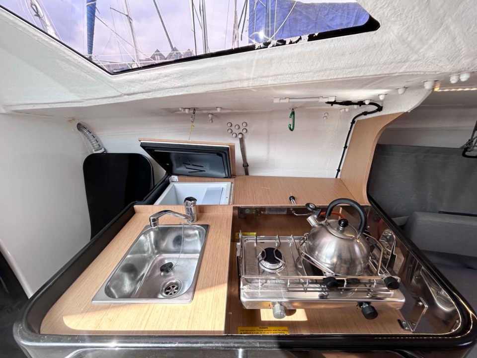 Jeanneau Sun Fast 3300 Jeanneau Yachts Overview Price£150,000 inc. Year Built 2020 Model Sunfast 3300 Length 9.99 LyingFalmouth, UK Jeanneau Yachts Image Gallery Exterior Interior Panorama Video View 43 images Enquire about this Yacht Contact a Red Ensign broker to discuss a yacht or your plans in confidence. SPEAK TO BROKER Enquire about this boat Falmouth Office Port Pendennis Marina, Challenger Quay, Falmouth TR11 3YL 01326 313143 | info@red-ensign.com Jeanneau Yachts - Sunfast 3300 CommentsThis field is for validation purposes and should be left unchanged.BoatName(Required) Name Email(Required) Message(Required) Specification Name Jeanneau Yachts Model Sunfast 3300 Builder Jeanneau Yachts Designer Guillaume Verdier and Daniel Andrieu Hull Material GRP Beam (m) 3.4 Draft (m) 1.95 Displacement (kg) 3500 Engine Yanmar Engine HP 15 Engine Hours 140 Overview Design and Performance The Jeanneau Sun Fast 3300 was conceived by Guillaume Verdier and Daniel Andrieu, a collaboration that delivers exceptional performance across multiple rating rules. Designed as a modern offshore racer, the Sun Fast 3300 combines speed, control, and versatility in a compact, highly competitive package. Usage and Condition Launched at the end of 2020 (with a 2021 hull number), this example has seen extremely light use. Due to COVID restrictions and one season laid up, she has effectively had around 1.5 seasons of use only. She has been lightly raced and cruised, rather than campaigned hard. Maintenance and Readiness The yacht has been freshly antifouled in May 2025 and fully serviced for the season. Because of this, she is offered in ready-to-go condition, with no immediate work required. Location and Viewing The yacht is currently located in Falmouth. Please contact Tristan for further information or to request a full set of high-resolution images. Equipment and Information Engine and Domestic Systems Yanmar 2YM15 14hp shaft drive 2 Blade folding Flexofold propeller 2 x 200L water ballast tanks + 2 x scoops + electric fill / dump pumps 220v Shore power + Victron waterproof battery charger Expert Pro battery monitor Additional 12v DC & USB charge sockets Fusion RA670 Apollo entertainment system + 4 x waterproof speakers 220v hot water system (works on shore power) 1 x cockpit operated manual bilge pump 2 x interior manual operated bilge pump compliant to Cat 2 OSR regs 1 x electric bilge pump Accommodations Forepeak with sink unit and plumbed in marine toilet Saloon with two settee berths + lee cloths Centreline folding saloon table Galley with stowage, 12v fridge and 2 burner gas hob Nav station with large chart table, stowage & instrument fascias 2 x sculptured seats in saloon with visibility through forward facing coach roof windows 2 x double aft cabins with lee boards for offshore comfort LED interior lighting Dyneema hanging lines fitted overhead in saloon Rig and Deck Gear Axxon carbon mast & boom with Barton boom strut, painted white + LED sail trimming light Harken twin groove headstay foil Cyclops forestay load cell Tri-light at masthead Deck level navigation lights Dyform standing rigging Dyneema running rigging 2 x Spinnaker halyards 2 x Jib halyards 1:1 and 2:1 tack line son bowsprit Comprehensive deck package by Harken and Spinlock 4 x Harken Performa winches + One Touch handles Removable bow roller Rope bags in cockpit Fenders & warps Anchor, chain & warp Jackstays for harness attachment fitting on both side decks and cockpit floor Custom storage cradle with hull formers The hull has a stunning and removable hull wrap Navigation – B & G system 9″ Zeus GPS Plotter mounted in cockpit + Navionics 28XG chart Triton 2 Speed / Depth / Wind transducers 2 x Triton 2 MFD displays (one at each helm) 2 x Triton Pilot controllers (one at each helm) 2 x 20/20 Mast displays + bracket Triton Pilot – NAC Core Pack, Type 1 linear drive ram WR10 Pilot remote control pad v60 VHF with DSC + remote handset + Hawk Windex aerial NAIS 5000 AIS transmitter/receiver + splitter Sails Square Top Mainsail with 2 reefs – RACE Membrane film/film Mainsail cover J2 Medium Genoa – RACE Membrane film/film Solent Jib – RACE Membrane film/film + Reef Furling Genoa Staysail (by North Sails) + associated deck gear A2 Medium Runner asymmetric spinnaker – SuperKote 75 A3 Medium Reaching asymmetric spinnaker – SuperKote 90 Furling Gennaker / Fractional Code 0 – Tri-radial CZ film/taffeta Facnor FX+ 1500 furler for Gennaker Storm Jib – Ocean Upwind Dacron, Orange Trysail – Ocean Upwind Dacron, Orange Construction Infusion GRP sandwich with balsa coring Infused structural inner liner glued into place Deck = infused GRP sandwich with foam coring Bulkheads = infusion GRP sandwich Twin rudders with stainless steel rudder stock Self aligning rudder bearings Broker's Comments The Sun Fast 3300 is one of those boats that instantly puts a smile on your face, and this one is a particularly clean example. She feels light, quick, and properly alive on the helm, but still very controlled when the breeze comes on. What stands out here is how little use she’s had, she hasn’t been hammered through full seasons, and it shows in the condition. With the carbon rig, full sail wardrobe, and ballast system already in place, she’s ready to be raced properly, yet she’s still versatile enough for fast cruising or offshore events. With the recent price reduction, this is a serious opportunity to step into a very capable and exciting boat without needing to spend again. DISCLAIMER The Company offers the details of this vessel in good faith but cannot guarantee or warrant the accuracy of this information nor warrant the condition of the vessel. A buyer should instruct his agents, or his surveyors, to investigate such details as the buyer desires validated. This vessel is offered subject to prior sale, price change, or withdrawal without notice. Explore more yachts for sale Bowman 40 £117,500 inc. View listing New listing Jeanneau Sun O