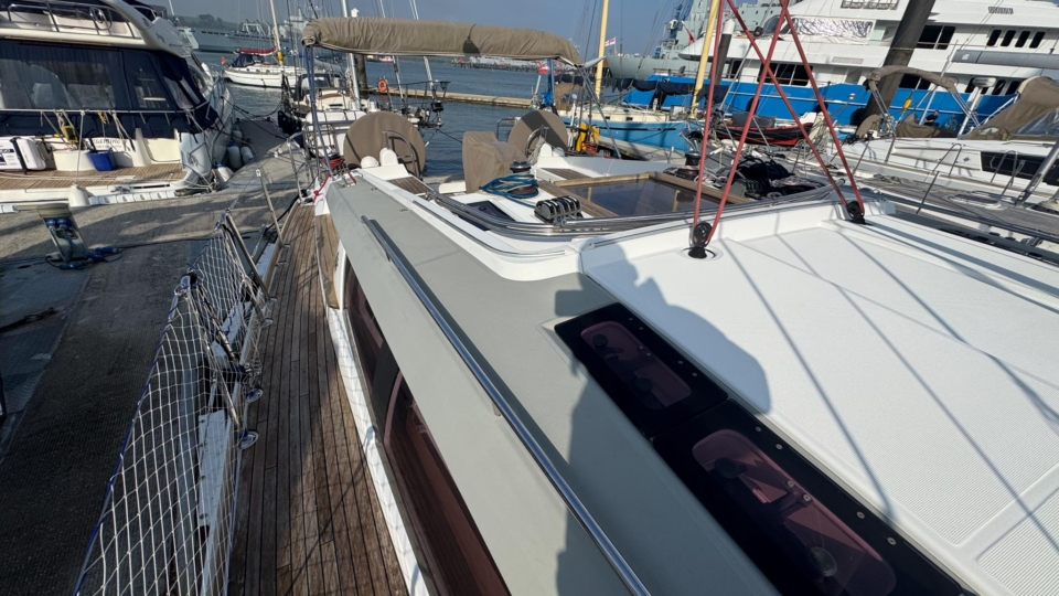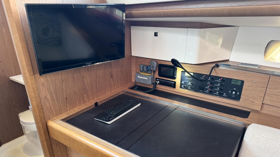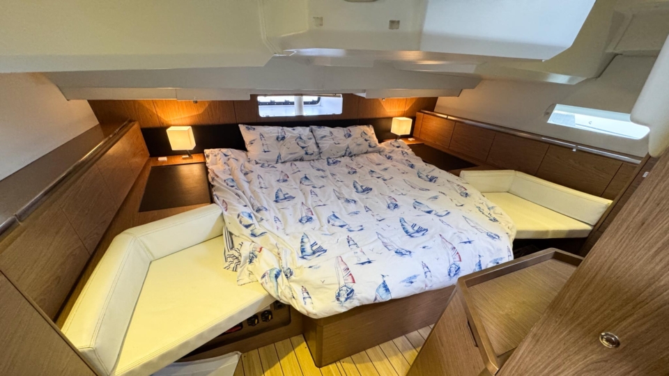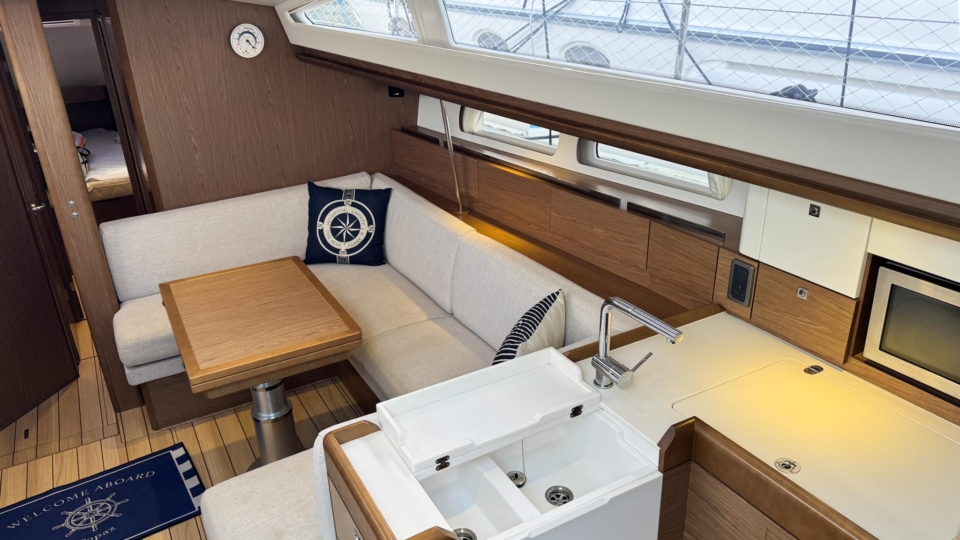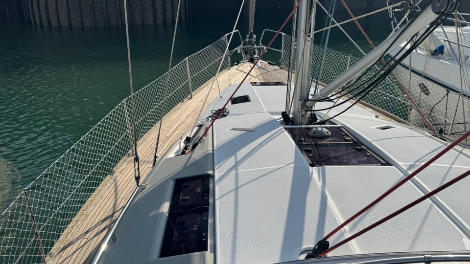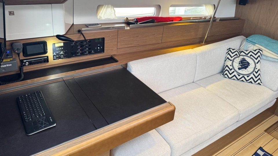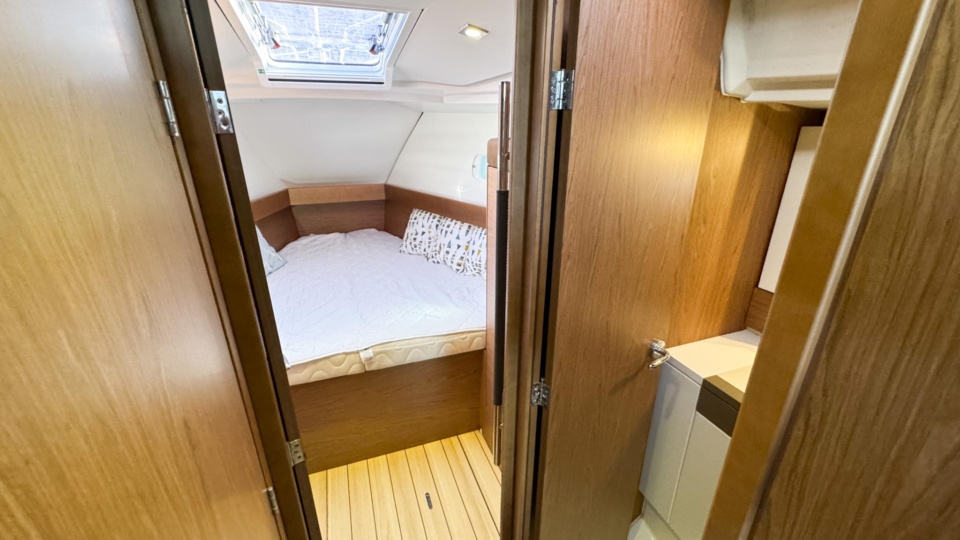 Jeanneau Sun Odyssey 44 DS Jeanneau Yachts Overview Price£175,000 inc. Year Built 1800 Model 44DS Length 13.34 Berths 5 LyingFalmouth, UK Jeanneau Yachts Image Gallery Exterior Interior View 56 images Enquire about this Yacht Contact a Red Ensign broker to discuss a yacht or your plans in confidence. SPEAK TO BROKER Enquire about this boat Falmouth Office Port Pendennis Marina, Challenger Quay, Falmouth TR11 3YL 01326 313143 | info@red-ensign.com Jeanneau Yachts - 44DS EmailThis field is for validation purposes and should be left unchanged.BoatName(Required) Name Email(Required) PhoneMessage(Required) Specification Manufacturer Jeanneau Yachts Model 44DS Designer Philip Briand Hull Material GRP Beam (m) 4.24 Draft (m) 2.2 Displacement (kg) 9750 Engine Yanmar - 4JH5-CE Engine HP 54 Engine Hours 700 Cabins 3 Berths 5 WC/Heads 2 Overview Experience exceptional comfort, performance, and modern design aboard this 2013 Jeanneau Sun Odyssey 44 Deck Saloon—a highly sought-after model known for its spacious layout, light-filled interior, and impressive sailing capabilities. This preferred two cabin plus bunk cabin, deep-keel configuration offers the perfect balance of luxury cruising and confident offshore performance A 2013 example, built in 2013 delivered to the first owner at the end of 2013. This beautiful Deck Saloon yacht is in fantastic condition, with low engine hours and the superb 2 heads layout, offering unrivalled comfort in this size bracket. Loaded with options, to include Triskel generator system, electric winches, diesel heating, autopilot, Mylar Taffets sails (original sails still unused & available), inverter, code 0, comprehensive Raymarine nav system, life raft, cockpit enclosure, extended water tanks, STARLINK system, standing rigging from 2023, sail drive seal from 2026 and much more “TOPAZ” is now available for immediate viewing and purchase from Pendennis Marina, Falmouth. She has to be one of the best 44 DS afloat. Equipment and Information CONSTRUCTION Hull deck and superstructure are all of GRP – WHITE Deep Fin Keel Spade Rudder Black antifouling – applied February 2026 Teak laid decking in the cockpit Full teak side decks Twin Wheels Cream woven material upholstery Walnut veneer interior wood finish. MACHINERY + ELECTRICS Yanmar 4JH5-CE – extremely light usage and full servicing. 54hp diesel 3-blade folding propeller with rope cutter New saildrive seal 2026 Bowthruster in a tunnel Tankage: Fuel capacity: 200 litres Water capacity total: 550 litres (additional 200 litre water tank) Holding tank for aft heads – 80 litres Triskel generator system Domestic battery bank renewed 2023 Separate engine battery Separate bow thruster battery Shore power system – 240V ring main – all UK 3 pion sockets Inverter – powering microwave & TV & computer Hot water via calorifier – heated with engine & 240V DECK EQUIPMENT Teak side decks and cockpit – teak in excellent condition Delta anchor, 60m 10mm chain Electric windlass controlled on deck and at helm Chain counter Kedge anchor & chain + warp Double anchor roller on bow Harken electric winch on coachroof (Port side) + 2nd coachroof winch to starboard Harken primary winches, upgraded to electric – ‘REWIND’ models – HARKEN 46 Genoa tracks with adjustable cars Spinlock jammers on coachroof + forward of each primary winch for main & jib sheets Midship cleats Lifeline gates Leather covered steering wheels Folding cockpit table with teak top – storage for bottle within Open aft transom with telescopic ladder Genoa and german mainsheet system led to aft cockpit winches – easy management by helmsman Sprayhood, bimini + full cockpit enclosure – all in excellent condition Outboard engine bracket Cockpit shower (H+C) swim ladder Dropdown washboard Davit for lifting outboard ACCOMMODATION 2 x cabin version plus bunk cabin with 2 x heads Diesel warm air Webasto heating system throughout – all cabins & heads Interior in immaculate condition Blinds throughout LED lighting throughout Forward guest cabin Large double berth Large hanging locker + deep cabinet with shelves Desk / vanity unit with storage Bunk cabin – Port side 2 offset single bunks Owners aft cabin Large hanging locker Side tables covered in leatherette – storage under Seats to either side of berth in cream leatherette Saloon with luxury folding saloon table on adjustable pedestal – electrically operated Navigation station L-shaped galley with two stainless steel sinks 2-burner hob with oven and grill Front opening fridge door 220v Microwave – operates from inverter – SHARP Forward Heads with shower Marine w.c. with holding tank for forward heads Moulded sink, hot & cold pressurised water Aft heads Shower divider in aft heads Electric shower sump pump Electric heads NAVIGATION EQUIPMENT Chart table with storage, main electrical panel LED Navigation lights + TRI light Conventional steam and deck lights 2 x i70 multifunction displays + speed/depth/wind transducers Raymarine i70 SPX30 autopilot + gyro Hydraulic linear drive ram for autopilot Raymarine E95 HYBRID TOUCH GPS in cockpit – mounted on swivelling Scanstrut pod 4kw digital Raymarine radar DSC VHF radio (Raymarine 55E) at chart table + masthead aerial AIS transciever – digital Yacht All instruments (GPS & MAP) displayed in TV screen at chart table SMART TV mounted on bulkhead – Panasonic Computer system – operated to TV screen – HP Chrome Box Stereo CD/MP3 player through BOSE speakers & sound system – connects to outside cockpit speakers also Battery monitor system Starlink system – WiFi via router RIGGING & SAILS Standing rigging from 2023 2 spreader Z Spar rig In mast furling with swept back spreaders Sails: Furling mainsail Mylar Taffeta with vertical battens Mylar Taffeta furling headsail (Original dacron sails available and unused) Code 0 – Xgrid – Mylar/Aramid Extra genoa halyard & 2:1 purchase for code 0 SAFETY Automatic fire extinguisher in engine space Fir