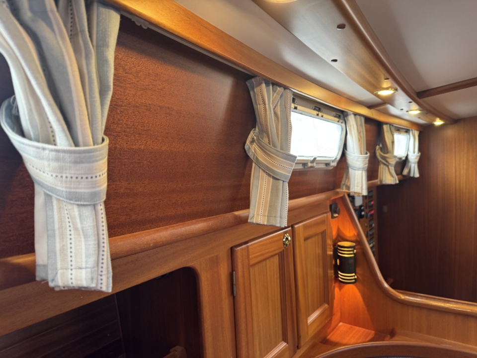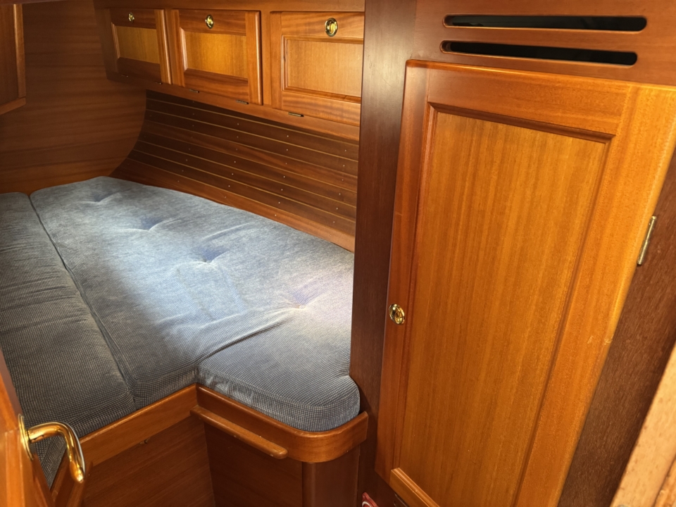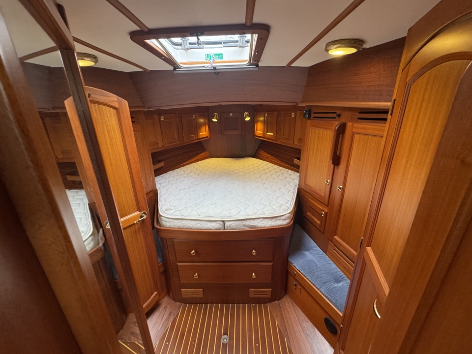 Malo 42 Malo Overview Price£199,000 inc. Year Built 2002 Model 42 Length 13.15 Berths 6 LyingFalmouth, UK Malo Image Gallery Exterior Interior Panorama Video View 59 images Enquire about this Yacht Contact a Red Ensign broker to discuss a yacht or your plans in confidence. SPEAK TO BROKER Enquire about this boat Falmouth Office Port Pendennis Marina, Challenger Quay, Falmouth TR11 3YL 01326 313143 | info@red-ensign.com Malo - 42 BoatName(Required) Name Email(Required) Message(Required) Specification Name Malo Model 42 Builder Malo Yachts - Sweden Designer Leif Angermark Hull Material GRP Beam (m) 3.99 Draft (m) 1.95 Displacement (kg) 13800 Engine Yanmar Engine HP 97 Engine Hours 5000 Cabins 2 Berths 6 Overview Design and Pedigree The Malö 42 is a true all-round ocean cruiser from one of Scandinavia’s most respected yacht builders, Malö Yachts. Designed by Leif Ängermark during the yard’s peak years, she is widely regarded as one of Malö’s finest designs. Often described as the “Swedish army knife” of cruising yachts, the Malö 42 combines strength, practicality, and genuine offshore capability. Build Quality and Capability This design is known for its exceptional build quality, with extensive hand-finishing and robust engineering throughout. It is widely accepted that the Malö 42 cost significantly more to build than later models, due to her over-engineered specification and attention to detail. As a result, she remains highly sought after and is rarely available on the UK market. Condition and Location Overall, this Malö 42 represents a great opportunity to acquire a proven Scandinavian bluewater cruiser, offered for immediate sale. She is currently lying in Falmouth and ready to be viewed. High-resolution images and further details are available — please call us for a full description. Equipment and Information CONSTRUCTION Hand laid Teak on deck, coach roof and cockpit. Balsa cored hull for optimal stiffness, bonging and insulation.. Encapsulated lead keel. Skeg hung spade rudder. Integral solid moulded rubbing strake. Off white gel coat with navy style stripe on coach roof and waterline. Sugar scoop transom with built-in teak steps and bathing ladder. Fixed windscreen with safety glass. Targa arch with mainsheet traveller over cockpit. Steering pedestal with wheel steering + emergency tiller New rudder bearings 2023 Substantial fresh water storage – 3 x stainless tanks with a 770 litre total capacity, DECK EQUIPMENT Stainless steel pulpit and wrap round quarter pushpits with stainless steel stanchion posts and double guard wires. Side access via detachable guard wires at the aft stanchion. Stern access via a short Teak topped platform and side steps up to the stern gate. The stern boarding ladder hinges up to further secure the stern access. Good wide easily navigated side deck and raised coachroof with Teak grab handles. Deep moulded toerail with Teak capping. Anchor well with electric anchor windlass. Deep centre cockpit with Teak floor. Teak topped seats and Teak either side of the companionway hatch. Forward of the bridge deck is a fixed wrap round screen with opening central window which the sprayhood attaches to, the aft end of which attaches to the Targa arch. Cockpit lockers under side benches and helm seat aft. Steering Pedestal with compass and grab rail. Folding cockpit table in Teak. Integrated Teak folding seats either side of the wheel. 30kg stainless steel Bruce anchor with 68m chain which deploys directly through the bow. Lofrans KOBRA electric windlass with wired and remote control Deck wash pump. Secondary stemhead fitting for mooring. Bow ladder Mooring cleats, forward, midships and aft. With stainless steel strips to prevent wear from mooring lines. Cockpit shower, hot and cold. Outboard bracket. Outboard hoist. Fenders and mooring warps. Hydrovane wind vane steering system – not fitted at the moment Cockpit tent Simpson folding davits (removable) Cockpit cushions WINCHES Anderson winches: 1 x 40 ST 1 x 40 ST electric 2 x 58 ST 1 x 28 ST on mast INTERIOR & ACCOMODATION 2 separate cabin plus saloon = 6 berths Eberspacher diesel fired warm air central heating – Eberspacher Hydronic M Blue upholstery Curtains throughout There are plenty of opening portlights including extra specified ones in the aft cabins. One opening deckhead hatch in the forward cabin. Two Dorade vents – one to provide ventilation for the forward cabin and one for the saloon. They are both protected with stainless steel frames. FORWARD CABIN This is a superb owners forward cabin, richly fitted out with plenty of storage. Large island berth with two drawers at the foot. The berth is good and, secure at sea and easily accessed. Sprung mattress. Two small dressing settees either side which also act as a nice step up to the berth. Hanging lockers and clothes lockers to port and starboard and door fronted lockers either side of the berth outboard with additional open fronted book lockers. Large deckhead opening hatch. Eberspacher heating control unit. Sprung matresses EN-SUITE HEADS To port is a large heads with moulded wash basin and vanity unit. Pressurised hot and cold water system via mixer tap. There is a mirror above the vanity unit and door fronted locker. Underneath are two further door fronted lockers. Manual marine toilet with stainless steel holding tank. Opening portlight. Duckboard floor. EN-SUITE SHOWER To starboard is a separate shower compartment. This is an ideal setup which leaves the heads as a dry zone. Full standing shower with shower rail mounted on the wall of the compartment. Shower seat. Two door fronted lockers. Opening portlight. Removable wet hanging rail. This is a lined compartment which is easy to spray down. Electric sump pump. SALOON To port – To port is a U shaped seating area; the long side can be used as an additional berth if required. Table with pedestal leg. The table top has 4 fold out sections and fiddles. 3 x door fronted lockers ou