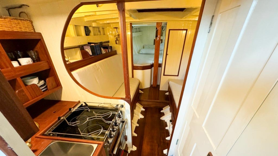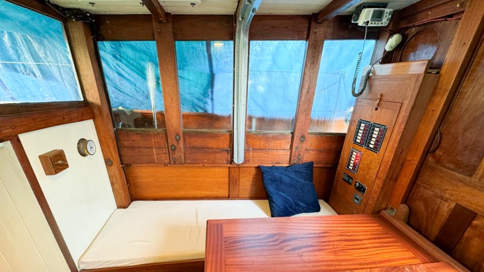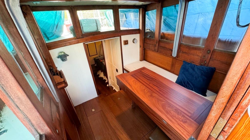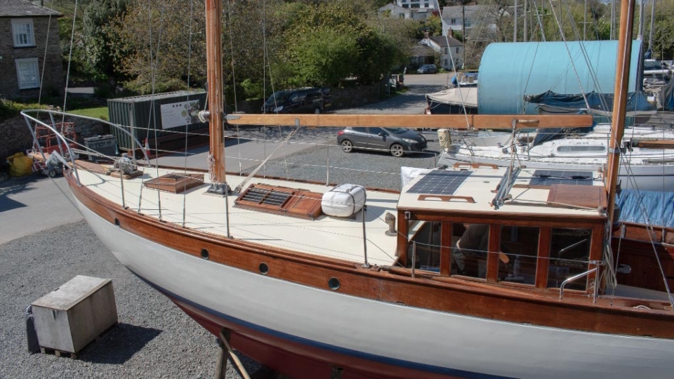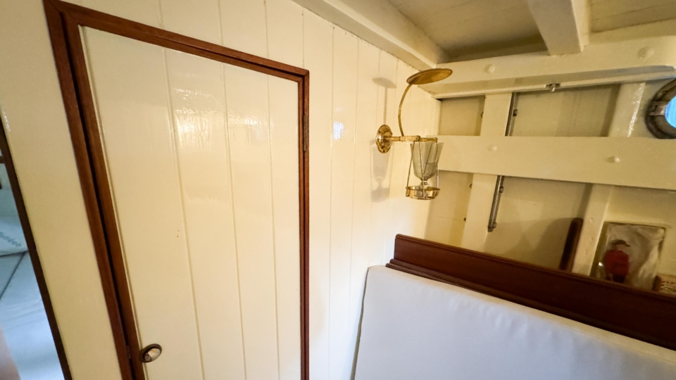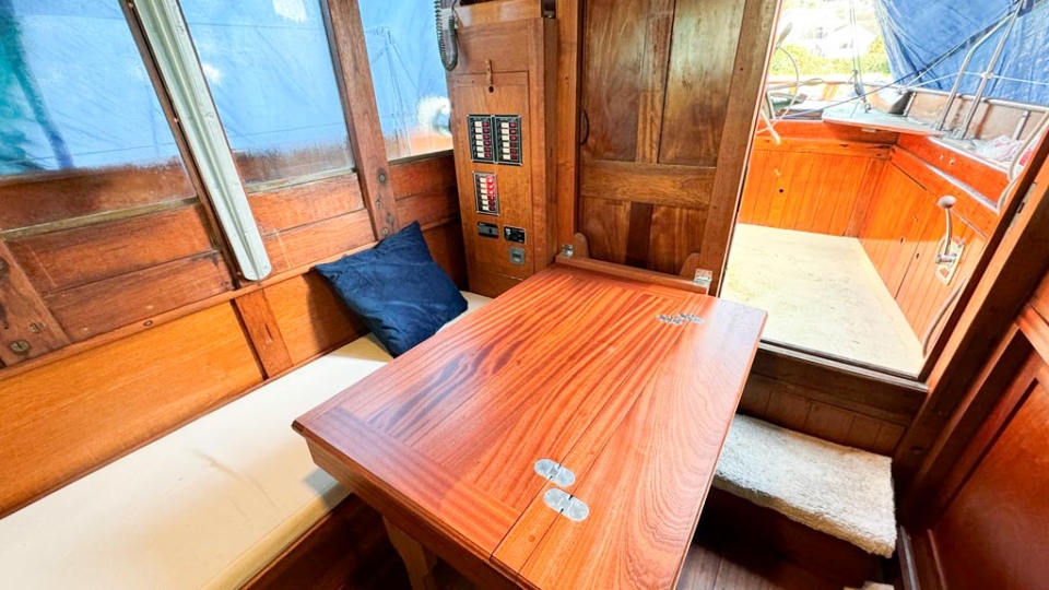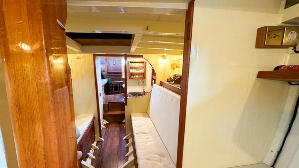 McGruer 38 Bermudan ketch McGruer Overview Price£29,950 inc. Year Built 1929 Model Bermudan Ketch Length 11.58 Berths 6 LyingFalmouth, UK McGruer Image Gallery Exterior Interior View 37 images Enquire about this Yacht Contact a Red Ensign broker to discuss a yacht or your plans in confidence. SPEAK TO BROKER Enquire about this boat Falmouth Office Port Pendennis Marina, Challenger Quay, Falmouth TR11 3YL 01326 313143 | info@red-ensign.com McGruer - Bermudan Ketch PhoneThis field is for validation purposes and should be left unchanged.BoatName(Required) Name Email(Required) Message(Required) Specification Name McGruer Model Bermudan Ketch Builder McGruers of Clynder Designer Ewing McGruer Hull Material Wood Beam (m) 2.9 Draft (m) 1.72 Displacement (kg) 10200 Engine VOLVO PENTA D1 Engine HP 30 Engine Hours 10 Cabins 1 Berths 6 WC/Heads 1 Overview Design and Provenance ‘Kythera’ was designed by Ewing McGruer and built in 1929 by McGruers of Clynder, on the Clyde. She was commissioned for Dr Carslaw, a well-known sailor of the time, who owned four McGruer yachts and documented his cruising extensively in published accounts of sailing on the West Coast of Scotland. As a result, Kythera carries both historical significance and a well-documented provenance. Construction and Rig She is solidly built, using 1.25-inch pitch pine planking, fastened with bronze screws to 3-inch by 3-inch sawn oak frames. The yacht is rigged as a masthead Bermudian ketch, with keel-stepped varnished wooden masts. Importantly, all standing rigging was replaced in December 2023, using stainless steel wire. A distinctive feature is her dog-house, which is unusual for McGruer yachts. This was likely a specific request by Dr Carslaw, who specified similar structures on more than one of his yachts, and it provides valuable shelter when sailing in northern climates. Refit and Recent Works Kythera has undergone a major refit over the past four years, bringing her to an exceptional standard. A reconditioned Volvo Penta D1 engine was fitted in 2020. Further upgrades include new standing and running rigging (2023), new chain plates (2023), and new sails fitted in 2024. In addition, she benefits from a solar panel system mounted on the dog-house, a recent Force 10 cooker, and new upholstery throughout. Condition and Use As a result of this work, Kythera now presents in excellent condition, while retaining the character and integrity expected of a yacht of this era. She is well suited to classic cruising, racing, and heritage sailing, offering her next owner a rare opportunity to sail a properly restored piece of British maritime history. Price and Availability NEW REDUCED PRICE – JULY 2025 Further details are available on request. Equipment and Information CONSTRUCTION Kythera is solidly built with 1.25″ pitch pine planks fastened with bronze screws to 3″ x 3″ sawn oak frames and 2 steamed intermediate timbers and copper rivet fastened. External iron ballast keel of four tons with galvanised steel bolts replaced in 2020. Galvanise steel strap floors bolted through the sawn frames. Straight laid tongue and groove pine deck sheathed in epoxy glass cloth, all new sheathing in 2023. Beautiful and rare solid teak doghouse and cockpit coamings. Deep and spacious self draining cockpit with a sliding teak door into the dog house. Doghouse roof newly sheathed in 2023. Wheel steering with a bronze rack and pinion type system. MACHINERY AND ELECTRICS Kythera is driven by a refurbished Volvo Penta D1-30 (from 2008) 3cyl 30hp diesel installed in 2020 and serviced in 2023. The engine has approx 10 hours since rebuild. Twin lever controls to a centreline 3 blade bronze propeller. Four leisure batteries and one dedicated engine starter battery are charged from the engine alternator, which can be checked with a Victron battery monitor. The batteries are also trickle charged from 300W of Renogy solar panels mounted on the dog house roof, which provide more than enough to keep all of the electrics running. 3000W Renogy inverter to power the cooker and three sockets that are spaced throughout the interior along with USB charging stations in the dog house and cockpit. There is a 90 litre copper fuel tank under the side deck in the cockpit with inspection hatch and breather system. For fresh water there is a 100 litre plastic water tank under the cockpit sole. There is a 30 litre calorifier that is heated from the engine for use in the galley sink and shower. A 35 litre holding tank for the heads. NAVIGATION VHF accessible from cockpit, NASA tactical wind indicator and display, axiom raymarine chart plotter (with navionics charts for Southern and Western UK) linked up with Trinav, Nasa Clipper speed and depth display. Tricolour masthead headlight, deck light, steaming light, port and starboard navigation lights, stern light. Original brass barometer and 2 compasses, one large one small. ACCOMMODATION There is ample headroom (over 6′) in the dog house, galley and main saloon. Sliding door from the cockpit into the dog house where there is a starboard side single settee berth and a centreline varnished chart table, that folds up into the aft bulkhead, a good sized fridge on port side along with storage behind sliding panels. The engine is under the dog house sole with multiple access points. Then steps down into the main saloon with the heads compartment to starboard and galley to port. The heads have a manual Jabsco sea toilet which discharges directly overboard or into a 35 litre holding tank. The galley has a stainless steel sink with both cold and hot water, a Force10 induction cooker, as well as loads of storage for provisions, pots, plates, bowls etc. The main cabin has two cushioned benches that fold up to be four single berths. Storage shelves behind and outboard of the backs of the benches, as well as below. Large cabinet for hanging clothes or wet weather gear on starboard. The forward V-berth is designed to have significant st