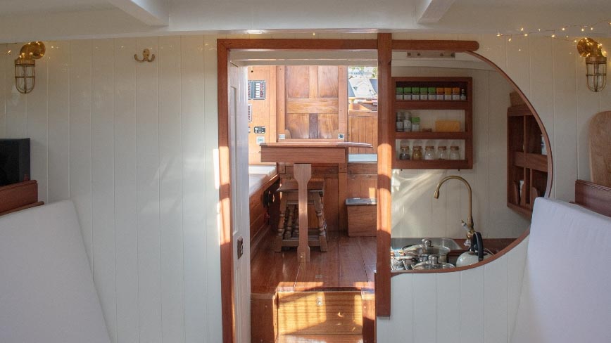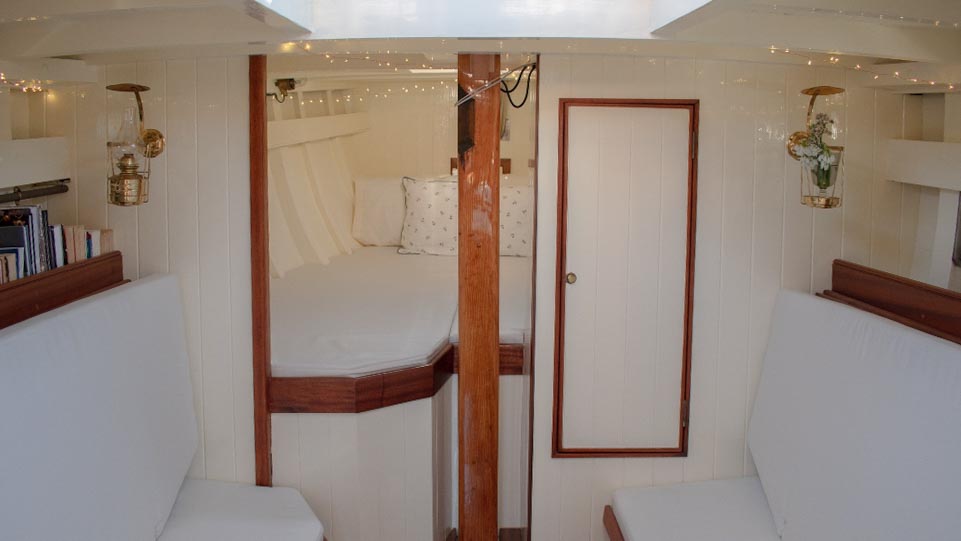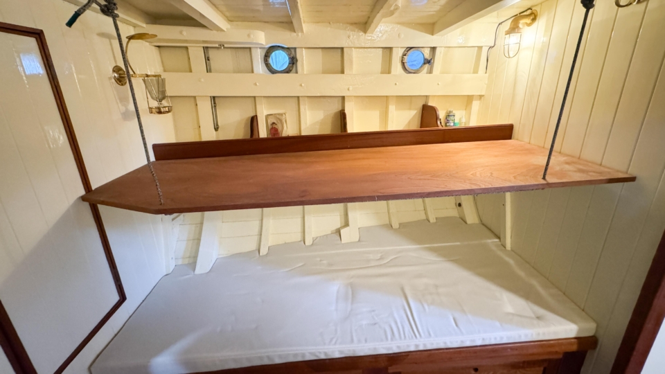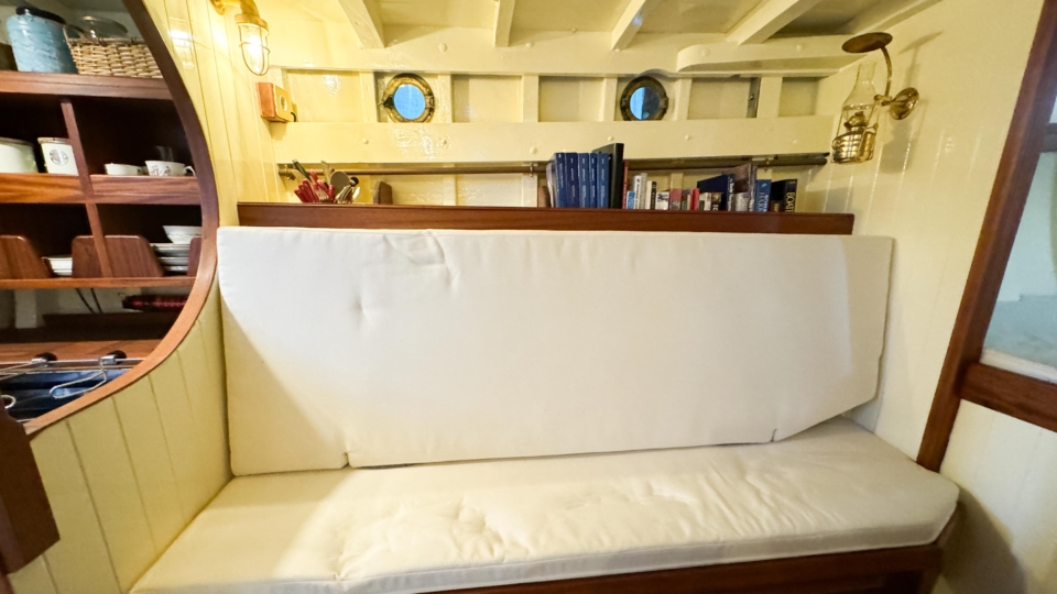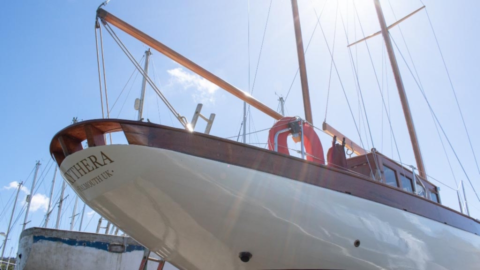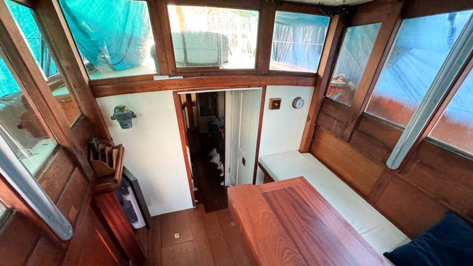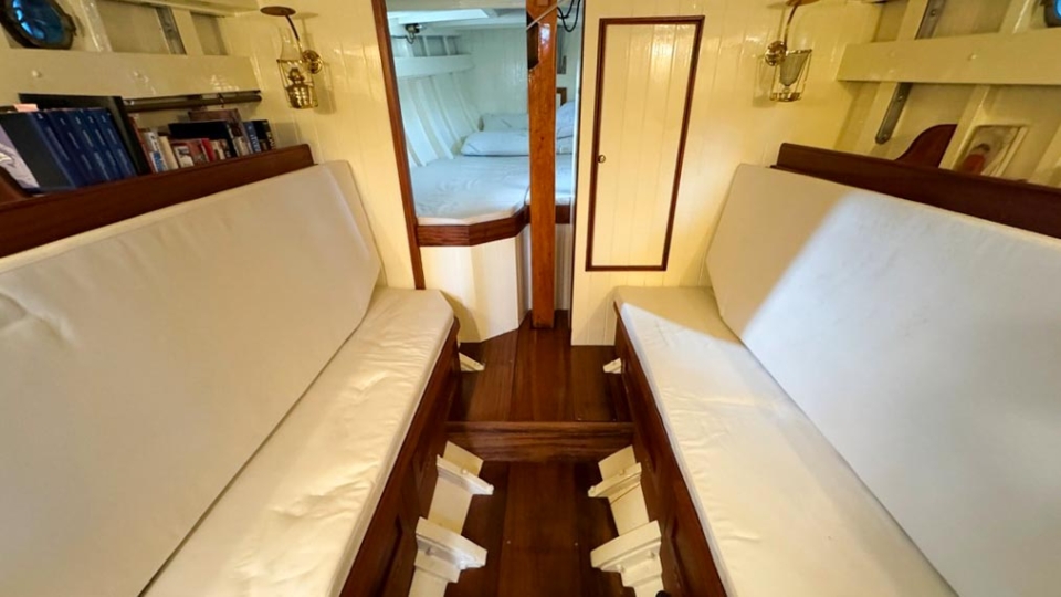 McGruer 38 Bermudan ketch McGruer Overview Price£29,950 inc. Year Built 1929 Model Bermudan Ketch Length 11.58 Berths 6 LyingFalmouth, UK McGruer Image Gallery Exterior Interior View 37 images Enquire about this Yacht Contact a Red Ensign broker to discuss a yacht or your plans in confidence. SPEAK TO BROKER Enquire about this boat Falmouth Office Port Pendennis Marina, Challenger Quay, Falmouth TR11 3YL 01326 313143 | info@red-ensign.com McGruer - Bermudan Ketch PhoneThis field is for validation purposes and should be left unchanged.BoatName(Required) Name Email(Required) Message(Required) Specification Name McGruer Model Bermudan Ketch Builder McGruers of Clynder Designer Ewing McGruer Hull Material Wood Beam (m) 2.9 Draft (m) 1.72 Displacement (kg) 10200 Engine VOLVO PENTA D1 Engine HP 30 Engine Hours 10 Cabins 1 Berths 6 WC/Heads 1 Overview Design and Provenance ‘Kythera’ was designed by Ewing McGruer and built in 1929 by McGruers of Clynder, on the Clyde. She was commissioned for Dr Carslaw, a well-known sailor of the time, who owned four McGruer yachts and documented his cruising extensively in published accounts of sailing on the West Coast of Scotland. As a result, Kythera carries both historical significance and a well-documented provenance. Construction and Rig She is solidly built, using 1.25-inch pitch pine planking, fastened with bronze screws to 3-inch by 3-inch sawn oak frames. The yacht is rigged as a masthead Bermudian ketch, with keel-stepped varnished wooden masts. Importantly, all standing rigging was replaced in December 2023, using stainless steel wire. A distinctive feature is her dog-house, which is unusual for McGruer yachts. This was likely a specific request by Dr Carslaw, who specified similar structures on more than one of his yachts, and it provides valuable shelter when sailing in northern climates. Refit and Recent Works Kythera has undergone a major refit over the past four years, bringing her to an exceptional standard. A reconditioned Volvo Penta D1 engine was fitted in 2020. Further upgrades include new standing and running rigging (2023), new chain plates (2023), and new sails fitted in 2024. In addition, she benefits from a solar panel system mounted on the dog-house, a recent Force 10 cooker, and new upholstery throughout. Condition and Use As a result of this work, Kythera now presents in excellent condition, while retaining the character and integrity expected of a yacht of this era. She is well suited to classic cruising, racing, and heritage sailing, offering her next owner a rare opportunity to sail a properly restored piece of British maritime history. Price and Availability NEW REDUCED PRICE – JULY 2025 Further details are available on request. Equipment and Information CONSTRUCTION Kythera is solidly built with 1.25″ pitch pine planks fastened with bronze screws to 3″ x 3″ sawn oak frames and 2 steamed intermediate timbers and copper rivet fastened. External iron ballast keel of four tons with galvanised steel bolts replaced in 2020. Galvanise steel strap floors bolted through the sawn frames. Straight laid tongue and groove pine deck sheathed in epoxy glass cloth, all new sheathing in 2023. Beautiful and rare solid teak doghouse and cockpit coamings. Deep and spacious self draining cockpit with a sliding teak door into the dog house. Doghouse roof newly sheathed in 2023. Wheel steering with a bronze rack and pinion type system. MACHINERY AND ELECTRICS Kythera is driven by a refurbished Volvo Penta D1-30 (from 2008) 3cyl 30hp diesel installed in 2020 and serviced in 2023. The engine has approx 10 hours since rebuild. Twin lever controls to a centreline 3 blade bronze propeller. Four leisure batteries and one dedicated engine starter battery are charged from the engine alternator, which can be checked with a Victron battery monitor. The batteries are also trickle charged from 300W of Renogy solar panels mounted on the dog house roof, which provide more than enough to keep all of the electrics running. 3000W Renogy inverter to power the cooker and three sockets that are spaced throughout the interior along with USB charging stations in the dog house and cockpit. There is a 90 litre copper fuel tank under the side deck in the cockpit with inspection hatch and breather system. For fresh water there is a 100 litre plastic water tank under the cockpit sole. There is a 30 litre calorifier that is heated from the engine for use in the galley sink and shower. A 35 litre holding tank for the heads. NAVIGATION VHF accessible from cockpit, NASA tactical wind indicator and display, axiom raymarine chart plotter (with navionics charts for Southern and Western UK) linked up with Trinav, Nasa Clipper speed and depth display. Tricolour masthead headlight, deck light, steaming light, port and starboard navigation lights, stern light. Original brass barometer and 2 compasses, one large one small. ACCOMMODATION There is ample headroom (over 6′) in the dog house, galley and main saloon. Sliding door from the cockpit into the dog house where there is a starboard side single settee berth and a centreline varnished chart table, that folds up into the aft bulkhead, a good sized fridge on port side along with storage behind sliding panels. The engine is under the dog house sole with multiple access points. Then steps down into the main saloon with the heads compartment to starboard and galley to port. The heads have a manual Jabsco sea toilet which discharges directly overboard or into a 35 litre holding tank. The galley has a stainless steel sink with both cold and hot water, a Force10 induction cooker, as well as loads of storage for provisions, pots, plates, bowls etc. The main cabin has two cushioned benches that fold up to be four single berths. Storage shelves behind and outboard of the backs of the benches, as well as below. Large cabinet for hanging clothes or wet weather gear on starboard. The forward V-berth is designed to have significant st