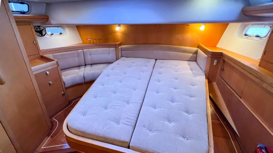 Overview Price£445,000 inc. Year Built 2004 Model 56 Length 17.49 Berths 8 LyingPlymouth, UK Oyster Yachts Image Gallery Exterior Interior View 50 images Enquire about this Yacht Contact a Red Ensign broker to discuss a yacht or your plans in confidence. SPEAK TO BROKER Enquire about this boat Plymouth Office Plymouth Yacht Haven, Shaw Way, Mount Batten, Plymouth PL9 9XH 01752 260086 | info@red-ensign.com Oyster Yachts - 56 BoatName(Required) Name Email(Required) Message(Required) Specification Name Oyster Yachts Model 56 Builder Oyster Yachts Designer Rob Humphreys Hull Material GRP Beam (m) 4.95 Draft (m) 2.52 Displacement (kg) 26499 Engine Perkins Sabre Diesel Engine HP 115 Engine Hours 5499 Cabins 3 Berths 8 WC/Heads 1 Overview Design and Pedigree The Oyster 56 is widely regarded as one of the most successful yachts ever produced by Oyster, with over 70 built and a long list of notable circumnavigations and bluewater passages. Designed by Rob Humphreys, she combines strong offshore performance with the build quality and finish for which Oyster is known. Sailing Performance and Handling The design delivers fast passage times in safety and comfort, making her a capable offshore passagemaker. ‘Shaya Moya’ is particularly well set up for short-handed sailing, with powered winches, hydraulic sail handling, a bow thruster, and autopilot. As a result, she can be confidently managed by two people, even in demanding conditions. Accommodation and Interior Below deck, the interior is spacious, well finished, and practical for long periods aboard. Accommodation is arranged for six adults, offering comfort and privacy whether cruising with family or guests. The quality of joinery and layout reflects Oyster’s reputation for creating refined, liveable interiors. Ownership and Condition ‘Shaya Moya’ has been extremely well maintained by her current owner, and this shows throughout. She presents as a well-cared-for example of the model, with systems and equipment aligned to serious cruising rather than marina use. Cruising Potential Whether your plans involve coastal cruising, an Atlantic circuit, or more ambitious long-distance voyaging, this Oyster 56 offers a proven and capable platform for extended adventures. Location and Viewing For further information or to arrange a viewing, please contact Paul in the Plymouth office on +44 (0)1752 260086. Equipment and Information Construction GRP hull produced using a Lloyd’s approved gelcoat and laminating resin Single-skin hull construction Stiffness provided by massive ribs and stringers Keel-stepped mast, White hull with cove line and double boot top lines Coppercoat Teak laid side decks, forward and aft coachroof, cockpit seats, sole and helmsman’s seat Teak decking replaced on ring deck, foredeck & aft deck in 2018 Deck edge incorporates internal scupper drains Raised bulwark finished with teak capping rail High-performance bulb external lead keel Whitlock Athena steering pedestal & stainless-steel Maxi wheel Fully protected skeg-hung rudder Engine, Stern Gear & Propulsion Perkins/Sabre M115T 4-cylinder diesel engine 115HP Approximately 5,500 engine hours Shaft drive Aquadrive coupling Max Prop 3-bladed 600mm (24”) diameter feathering propeller Ambassador AM15 rope cutter on shaft Engine and generator Racor filters parallel plumbed to allow cross supply Racor 500FG fuel filter and water separator Twin alternators: 1x 55A/12V alternator for engine start battery charging 1x Mastervolt 150A/24V high output heavy-duty alternator with 3-stage charge regulator for domestic battery charging Electric Sleipner 10.7hp tunnel bow thruster with GRP eyebrow, and control panel on steering pedestal Manifold system for seawater inlets to reduce through-hull fittings Deck Equipment 45kg stainless-steel Ultra anchor with 100m of 12mm stainless-steel chain and chain counter 20kg Bruce kedge anchor with 100m of 18mm Octoplait warp and 10m of 12mm chain Lewmar Ocean 3 vertical (24V) capstan gypsy/drum type hydraulic anchor windlass Two-way and operated on deck by adjacent foot switches Remote windlass control switch at pedestal2x Lewmar 66 CEST two speed, electric primary winches 2x lewmar 54 secondary winches 1x Lewmar 48 CEST electric mainsheet winch 2x Lewmar 48 CST two speed, main and genoa halyard winches on mast 2x Lewmar 16 CST two speed, mainsheet traveller winchesSolid teak-topped cockpit table permanently installed in a robust stainless-steel frame Hinged lid access to insulated GRP Frigomatic 24V (keel-cooled) cool box Stainless-steel bathing/board ladder with teak treads Lightweight passerelle Stern quarter pushpit seats in teak and stainless-steelTeak outboard bracket on starboard side pushpit Cooney electric davits – 300kg maximum total load Stern post for navigation/communications antennae AB 3.4m RIB with Raymarine GPS and depth sounder Yamaha 4-stroke 25hp lightweight outboard motor Bauer Junior dive compressor with four cylinders in lazarette Large custom fold-down companionway sprayhood with stainless-steel frame Padded cockpit table cover with access flap to coolbox Covers for pedestal and steering wheel Cockpit seat cushions in closed cell foam with acrylic covers Awning to cover boat from mast to stern Six-person cannister life raft Webbing jackstays Emergency tiller Systems ELECTRICAL SYSTEM Domestic batteries: 8 x Lifeline AGM deep-cycle 6V (20 hour), giving a total of 460Ah at 24V Engine start: 88Ah Delta AGM battery Generator start: 12V gel cell battery Cummins Onan MDKBN 11kW diesel generator with remote digital control panel 12V DC dedicated start battery, charged by its own alternator Approximately 350 generator hours Mastervolt 220V MASS 24V/100A battery charger Mastervolt BTM1 battery monitor Mastervolt 3-stage regulator Victron Orion DC-DC filtered power supply 2x (220V) Mastervolt 24V/1500W inverters 220V AC ring main with double Clipsal outlet sockets 30A dockside shore power cable, 3-core double insulated PVC, 18m (60