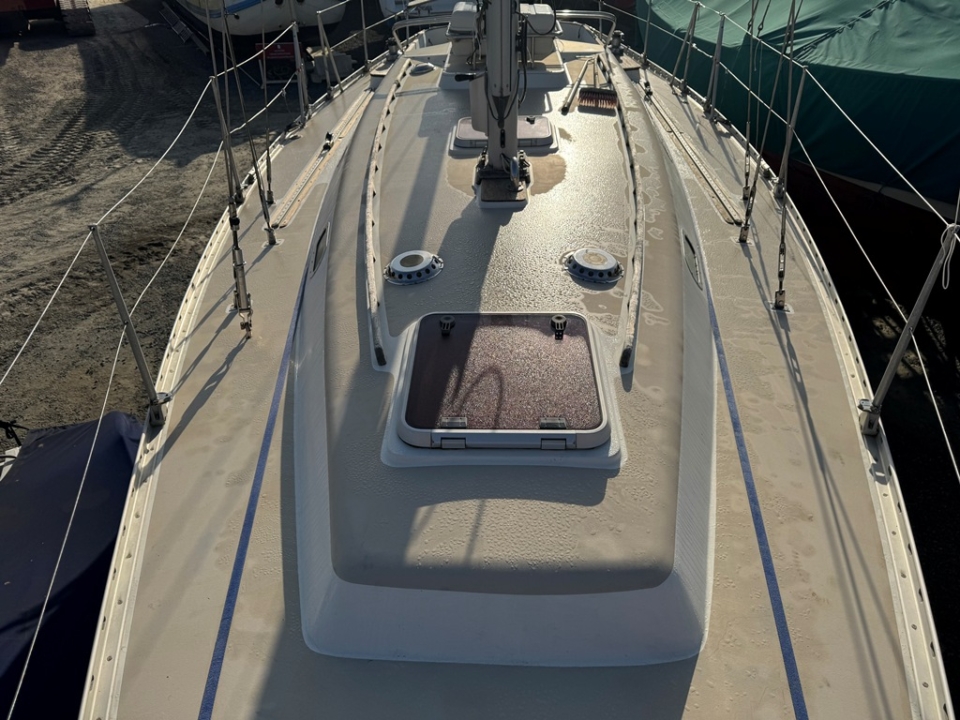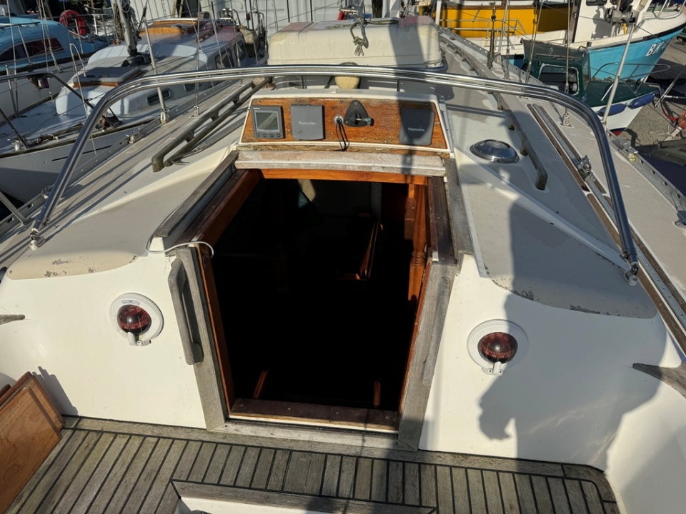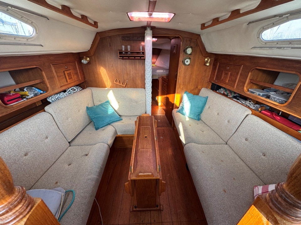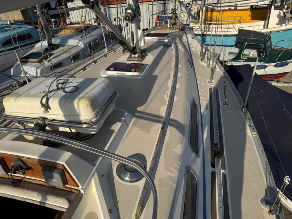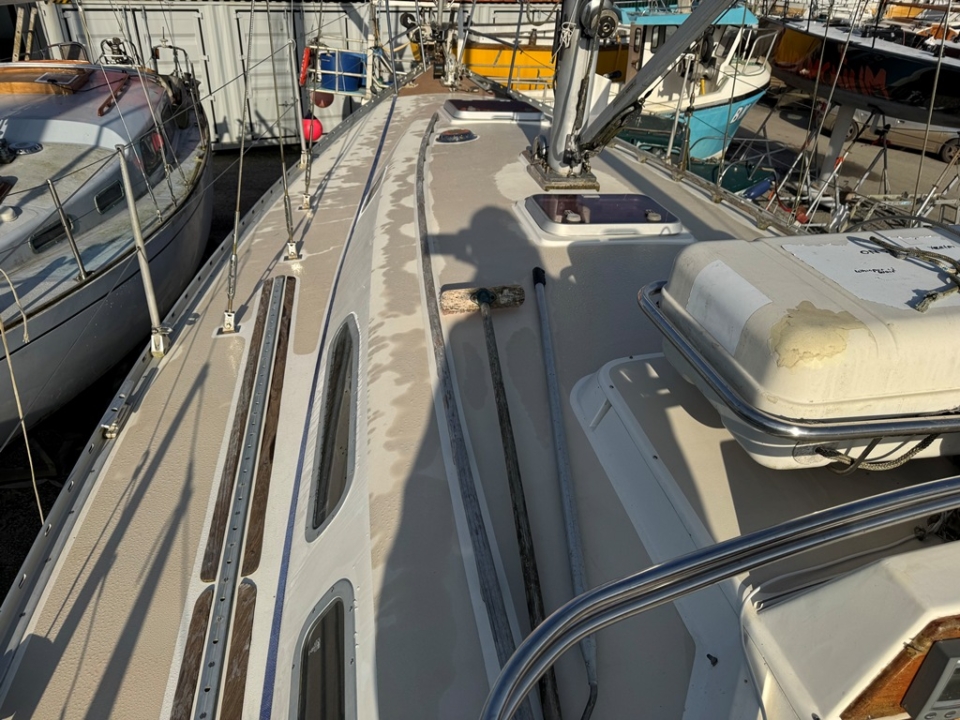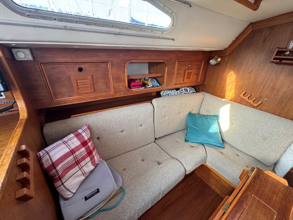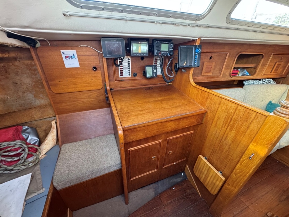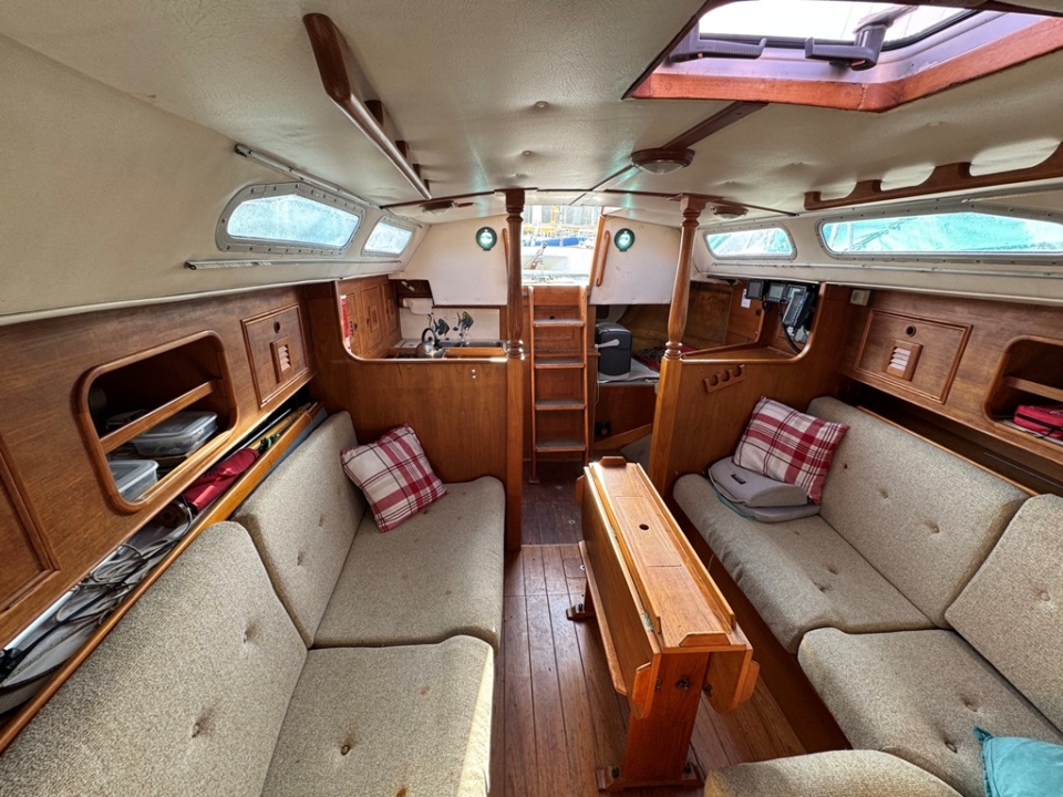 Rustler 36 Rustler Yachts Overview Price£39,950 inc. Year Built 1987 Model 36 Length 10.77 LyingGweek, UK Rustler Yachts Image Gallery Exterior Interior View 35 images Enquire about this Yacht Contact a Red Ensign broker to discuss a yacht or your plans in confidence. SPEAK TO BROKER Enquire about this boat Falmouth Office Port Pendennis Marina, Challenger Quay, Falmouth TR11 3YL 01326 313143 | info@red-ensign.com Rustler Yachts - 36 FacebookThis field is for validation purposes and should be left unchanged.BoatName(Required) Name Email(Required) PhoneMessage(Required) Specification Manufacturer Rustler Yachts Model 36 Designer Holman & Pye Hull Material GRP Beam (m) 3.35 Draft (m) 1.68 Displacement (kg) 7623 Engine Thornycroft 80D Cabins 1 WC/Heads 1 Overview REASONABLE OFFERS CONSIDERED The infamous Rustler 36 has a long keel and well reputed gentle sea motion for blue water sailing – the boat of choice for the GGR. This 1987 example needs some modernisation but the white hull and NO TEAK DECKS are a great place to start. She needs a new engine – alternatively, the old Thornycroft can be re-built. Good sail inventory and wind vane steering are included. Currently ashore – as pictured – in a boatyard near Falmouth, UK. Please call us for a full description. Equipment and Information Hull and Deck White GRP hull White GRP deck and coach roof Beige painted non slip side decks Copper coated Teak laid cockpit area Teak quarter seats on push pit Smith mushroom deck vents Canvas covers for deck hatches and windlass Machinery Thorneycroft 80D diesel engine – needs rebuilding – currently removed Shaft drive with fixed 3 blade prop Tiller steering Wind vane steering system Bow roller Midship cleats Rigging & Sails Standing rigging from 2015 Anodised spars Lewmar genoa sheet cars Fully battened mainsail – in good condition Additional mainsail – Sanders 2003 Genoa new 2009 #3 jib – Crusader 2002 – good condition Spinnaker – Sanders 2003 – good condition Storm jib – new 2015 – excellent condition Stack Pack style mainsail stowage Accomodation Teak finished interior woodwork throughout. Professionally re-varnished 2013 5 berth in 2 cabins Pipe cot to saloon port side – new Rustler Yachts installation 2010 Heads compartment forward with shower, sink and toilet. Galley 2 burner cooker with oven and grill Galley twin S/S sink unit – manual pump cold water Outboard facing chart table CD/Fm stereo 12v power socket Basic cabin heating Clock and Barometer DISCLAIMER The Company offers the details of this vessel in good faith but cannot guarantee or warrant the accuracy of this information nor warrant the condition of the vessel. A buyer should instruct his agents, or his surveyors, to investigate such details as the buyer desires validated. This vessel is offered subject to prior sale, price change, or withdrawal without notice. Explore more yachts for sale Under Offer RUSTLER 42 £349,500 inc. View listing Rustler 36 £39,950 inc. View listing Under Offer OYSTER 49 POA View listing Bowman 40 £117,500 inc. View listing Page 1 Page 2 Page 3 … Page 15 Next »