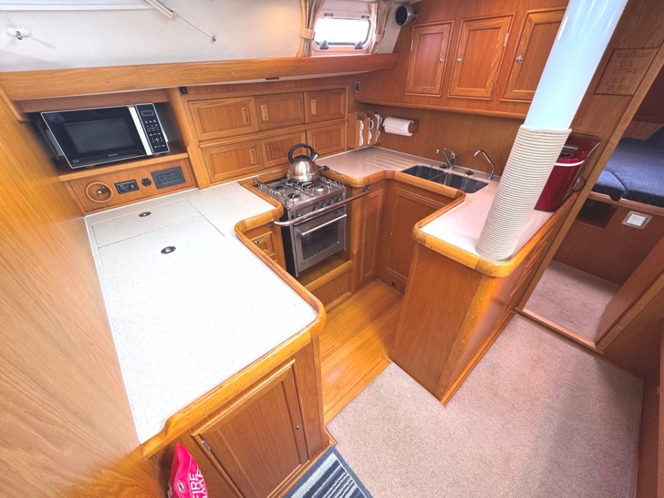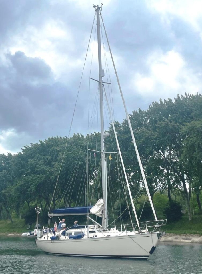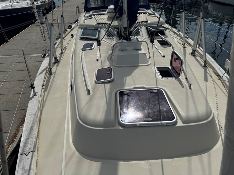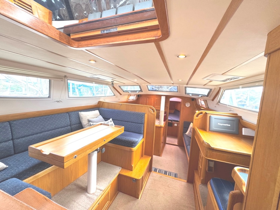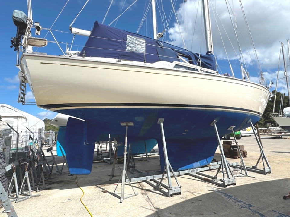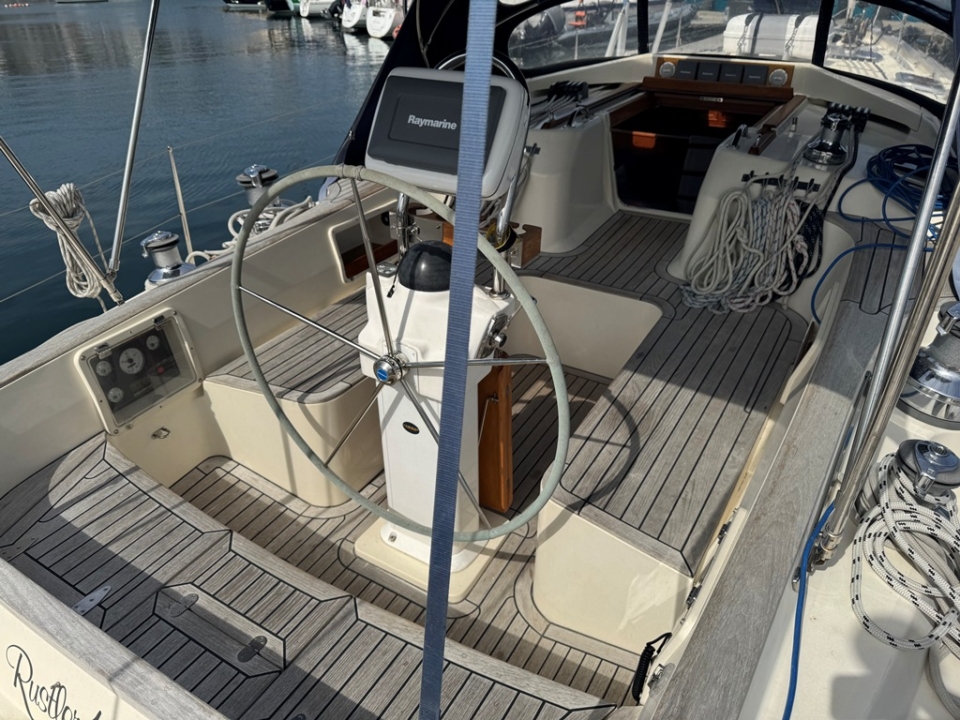 Rustler 44 Rustler Yachts Overview Price£385,000 inc. Year Built 2011 Model 44 Length 13.50 LyingFalmouth, UK Rustler Yachts Image Gallery Exterior Interior Panorama Video View 56 images Enquire about this Yacht Contact a Red Ensign broker to discuss a yacht or your plans in confidence. SPEAK TO BROKER Enquire about this boat Falmouth Office Port Pendennis Marina, Challenger Quay, Falmouth TR11 3YL 01326 313143 | info@red-ensign.com Rustler Yachts - 44 BoatName(Required) Name Email(Required) Message(Required) Specification Name Rustler Yachts Model 44 Builder Rustler Yachts Designer Stephen Jones Hull Material GRP Beam (m) 4.28 Draft (m) 2.10 Displacement (kg) 13700 Engine Nanni N4.85 Engine HP 85 Engine Hours 2400 Cabins 1 Overview Design and Capability Designed by Stephen Jones and built by Rustler Yachts, this yacht was conceived to deliver fast, comfortable passage making alongside exceptional build quality. The result is a serious bluewater cruiser, designed to look after her crew offshore while remaining a refined and durable place to live aboard. Specification and Equipment This yacht is exceptionally well specified for long-distance cruising. Equipment includes a generator, inverter, diesel heating, bow thruster, electric halyard winch, and electric primary winches. In addition, she benefits from a comprehensive electronics package, davits, white sails from 2020, a cruising chute, recent batteries, recent standing rigging, and a dinghy with outboard. As a result, she presents as a complete and capable cruising package. Condition and Recent Use The yacht presents in very good condition throughout. She is returning after a Caribbean circuit, which confirms both her capability and her readiness for further offshore use. Importantly, she has been maintained with long-term cruising in mind rather than marina use. Location and Viewing She is currently located outside the Rustler factory in Falmouth, an ideal place to inspect a yacht of this pedigree. A full picture folio is now available, with many additional high-resolution images on request.For further information, please contact Simon in the Falmouth office on 01326 313142. Equipment and Information Construction Isophthalic gel coat (double gel), colour off white Blue antifouling Hull epoxy coated from new Bulkheads are of 18mm marine grade plywood bonded to the hull and deck and longitudinal stiffening Rudder 60mm stainless steel rudder stock with four stainless steel tangs inside a GRP foam filled rudder. Engine beds are in GRP and incorporate a sealed drip tray. Proprietary Jones bulb design keel geometry. A single piece casting of lead external ballast with 4% antimony fastened to hull with 24mm dia. stainless steel bolts. Recessed cavita line in hull moulding inlaid with a gold tape. Hull & transom reinforcement for Hydrovane wind vane steering system Off-white isophthalic gel deck with non-slip areas Coachroof and inner coamings are stiffened with 12mm balsa core and all deck fittings are reinforced by 12mm marine ply pads Lewmar deck hatches Blakes seacocks Machinery Engine Nanni N4.85 85hp (62.6kW) 4 cylinder marine diesel engine with a 2:1 hydraulic reduction gearbox. Upgraded raw water filter 38mm diameter stainless steel prop shaft with aquadrive unit Conventional stuffing box and bearing inboard – Outboard end with water lubricated cutlass bearing Maxprop Rope cutter Twin alternators alternator Twin Racor filters with switch over valve Sidepower bowthruster – upgraded to SE100 Fuel tank water removal pump (sucks from the tank bottom) Holding tank with deck exit (fwd & aft heads to 2 x separate holding tanks) Hot water via calorifier – engine & 240V Portable fuel polisher Electrics Generator – Nanni – mounted between engine & gearbox providing 4kW 240V from main engine Inverter – Mass Sine 1.2kW AGM batteries from 2023 75Ah Optima engine start battery 75Ah Optima bow thruster battery Battery charging system Mastervolt 12100 chargemaster Battery Monitoring Mastervolt BTM III battery system to monitor battery consumption on both service and domestic banks. Power distribution is via an Empirbus node system 2 x Solara 23W & 1 x Solara 68W solar panel on coach roof LED tri-colour & anchor lights External cockpit flood light Deck Gear Boarding ladder – mounting port or stbd Aft boarding ladder Full cockpit enclosure Bimini Sun awning Electric halyard winch mounted to coachroof Electric primary winches Lewmar winches all round Binnacle cover Electric anchor windlass 60m anchor chain (new 2025) + 54m warp Delta 25kg anchor & Cobra anchor Lewmar steering – leather covered Outboard davit fitted to pushpit Simpson dinghy davits to transom Cockpit table Cockpit cushions Communications post with integral dinghy outboard crane Large Sampson post on foredeck Aft deck shower (Hot & Cold) Teak seats in pushpit – Port & Stbd Rigging Selden mast & boom Standing rigging from 2022 Cutter rigged with large Yankee headsail – Furlex furling Furlex Furling inner forestay and Staysail. Running backstays Spinnaker pole with running gear (stored on mast) Running Rigging Halyards in dyneema or Super Polyester braidline and colour coded Mast steps (2 folding) at mast base to reach main & 2 fixed at mast head Stackpac system for mainsail – new 2025 Main – ONESAIL from 2020 – fully battened Staysail – ONESAIL from 2020 Yankee – ONESAIL from 2020 Asymmetric spinnaker with fracnor furling system + all running gear – from 2011 Navigation & Electronics ICOM 510 DSC VHF with Hawk antenna to mast head – new 2025 ICOM command mike in cockpit – new 2025 Raymarine ST6002 + autopilot onto Whitlock mamba drive Raymarine C120W chartplotter/radar at chart table 4KW 18″ raydome radar to mast Raymarine C90W chartplotter / radar repeater at helm pod Raymarine AIS 500 transponder Raymarine ST60 speed, depth, VMG & wind Furuno NX300 Navtex Domestic stereo CD/radio with IPOD connection 4 speaker switchable system to saloon, upper sal