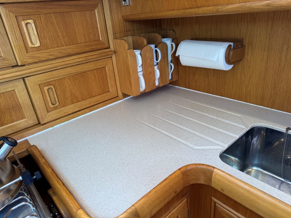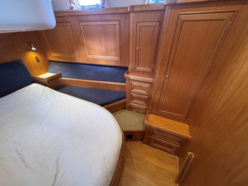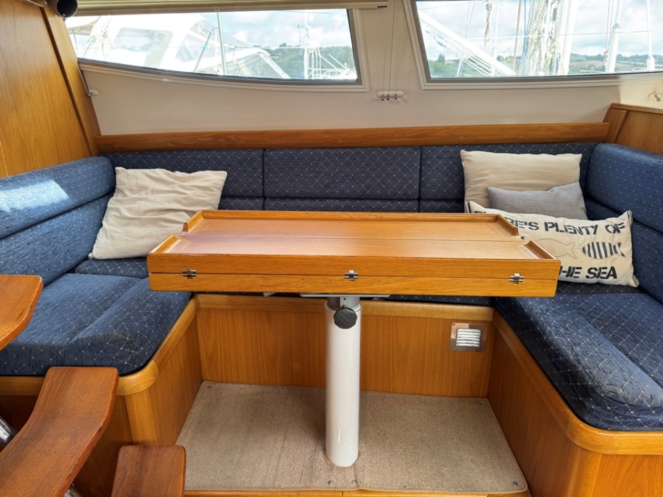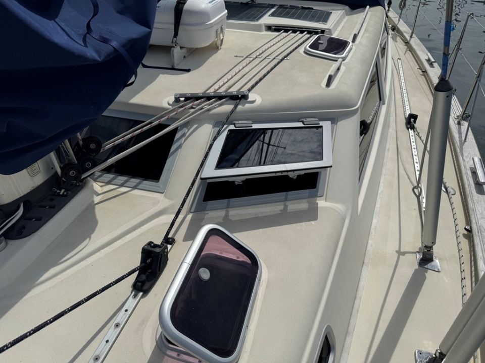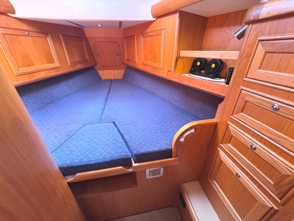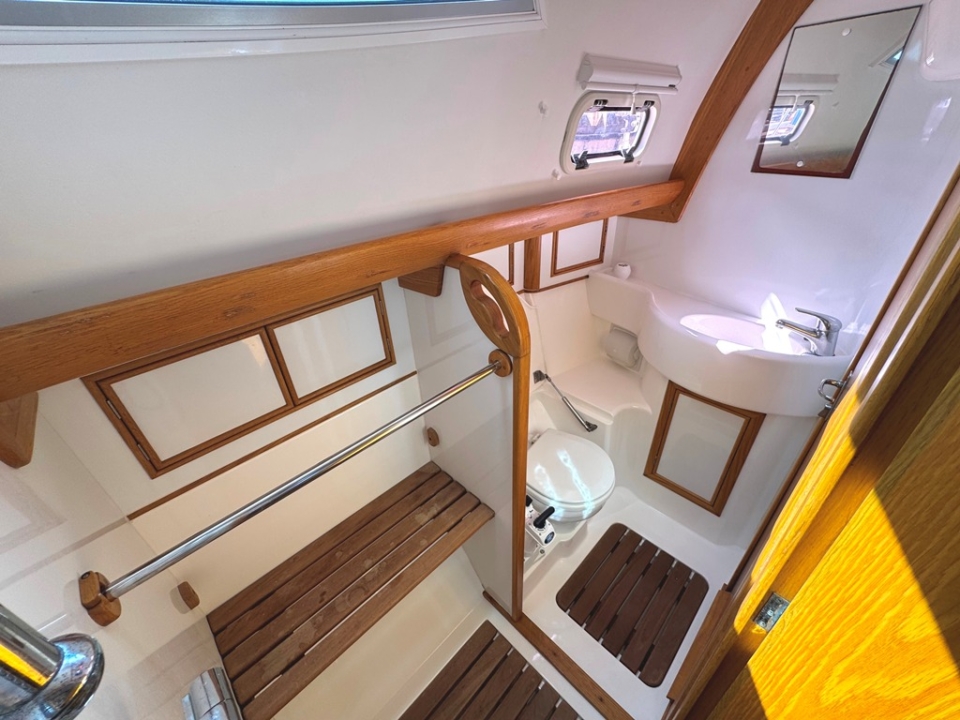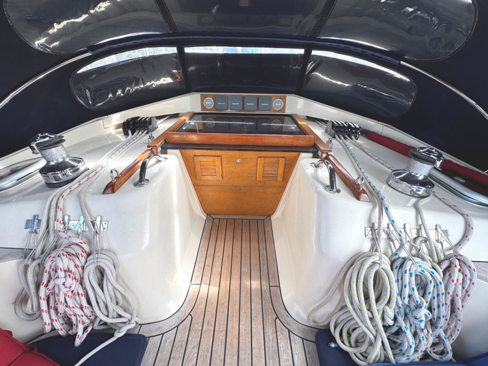 Rustler 44 Rustler Yachts Overview Price£385,000 inc. Year Built 2011 Model 44 Length 13.50 LyingFalmouth, UK Rustler Yachts Image Gallery Exterior Interior Panorama Video View 56 images Enquire about this Yacht Contact a Red Ensign broker to discuss a yacht or your plans in confidence. SPEAK TO BROKER Enquire about this boat Falmouth Office Port Pendennis Marina, Challenger Quay, Falmouth TR11 3YL 01326 313143 | info@red-ensign.com Rustler Yachts - 44 BoatName(Required) Name Email(Required) Message(Required) Specification Name Rustler Yachts Model 44 Builder Rustler Yachts Designer Stephen Jones Hull Material GRP Beam (m) 4.28 Draft (m) 2.10 Displacement (kg) 13700 Engine Nanni N4.85 Engine HP 85 Engine Hours 2400 Cabins 1 Overview Design and Capability Designed by Stephen Jones and built by Rustler Yachts, this yacht was conceived to deliver fast, comfortable passage making alongside exceptional build quality. The result is a serious bluewater cruiser, designed to look after her crew offshore while remaining a refined and durable place to live aboard. Specification and Equipment This yacht is exceptionally well specified for long-distance cruising. Equipment includes a generator, inverter, diesel heating, bow thruster, electric halyard winch, and electric primary winches. In addition, she benefits from a comprehensive electronics package, davits, white sails from 2020, a cruising chute, recent batteries, recent standing rigging, and a dinghy with outboard. As a result, she presents as a complete and capable cruising package. Condition and Recent Use The yacht presents in very good condition throughout. She is returning after a Caribbean circuit, which confirms both her capability and her readiness for further offshore use. Importantly, she has been maintained with long-term cruising in mind rather than marina use. Location and Viewing She is currently located outside the Rustler factory in Falmouth, an ideal place to inspect a yacht of this pedigree. A full picture folio is now available, with many additional high-resolution images on request.For further information, please contact Simon in the Falmouth office on 01326 313142. Equipment and Information Construction Isophthalic gel coat (double gel), colour off white Blue antifouling Hull epoxy coated from new Bulkheads are of 18mm marine grade plywood bonded to the hull and deck and longitudinal stiffening Rudder 60mm stainless steel rudder stock with four stainless steel tangs inside a GRP foam filled rudder. Engine beds are in GRP and incorporate a sealed drip tray. Proprietary Jones bulb design keel geometry. A single piece casting of lead external ballast with 4% antimony fastened to hull with 24mm dia. stainless steel bolts. Recessed cavita line in hull moulding inlaid with a gold tape. Hull & transom reinforcement for Hydrovane wind vane steering system Off-white isophthalic gel deck with non-slip areas Coachroof and inner coamings are stiffened with 12mm balsa core and all deck fittings are reinforced by 12mm marine ply pads Lewmar deck hatches Blakes seacocks Machinery Engine Nanni N4.85 85hp (62.6kW) 4 cylinder marine diesel engine with a 2:1 hydraulic reduction gearbox. Upgraded raw water filter 38mm diameter stainless steel prop shaft with aquadrive unit Conventional stuffing box and bearing inboard – Outboard end with water lubricated cutlass bearing Maxprop Rope cutter Twin alternators alternator Twin Racor filters with switch over valve Sidepower bowthruster – upgraded to SE100 Fuel tank water removal pump (sucks from the tank bottom) Holding tank with deck exit (fwd & aft heads to 2 x separate holding tanks) Hot water via calorifier – engine & 240V Portable fuel polisher Electrics Generator – Nanni – mounted between engine & gearbox providing 4kW 240V from main engine Inverter – Mass Sine 1.2kW AGM batteries from 2023 75Ah Optima engine start battery 75Ah Optima bow thruster battery Battery charging system Mastervolt 12100 chargemaster Battery Monitoring Mastervolt BTM III battery system to monitor battery consumption on both service and domestic banks. Power distribution is via an Empirbus node system 2 x Solara 23W & 1 x Solara 68W solar panel on coach roof LED tri-colour & anchor lights External cockpit flood light Deck Gear Boarding ladder – mounting port or stbd Aft boarding ladder Full cockpit enclosure Bimini Sun awning Electric halyard winch mounted to coachroof Electric primary winches Lewmar winches all round Binnacle cover Electric anchor windlass 60m anchor chain (new 2025) + 54m warp Delta 25kg anchor & Cobra anchor Lewmar steering – leather covered Outboard davit fitted to pushpit Simpson dinghy davits to transom Cockpit table Cockpit cushions Communications post with integral dinghy outboard crane Large Sampson post on foredeck Aft deck shower (Hot & Cold) Teak seats in pushpit – Port & Stbd Rigging Selden mast & boom Standing rigging from 2022 Cutter rigged with large Yankee headsail – Furlex furling Furlex Furling inner forestay and Staysail. Running backstays Spinnaker pole with running gear (stored on mast) Running Rigging Halyards in dyneema or Super Polyester braidline and colour coded Mast steps (2 folding) at mast base to reach main & 2 fixed at mast head Stackpac system for mainsail – new 2025 Main – ONESAIL from 2020 – fully battened Staysail – ONESAIL from 2020 Yankee – ONESAIL from 2020 Asymmetric spinnaker with fracnor furling system + all running gear – from 2011 Navigation & Electronics ICOM 510 DSC VHF with Hawk antenna to mast head – new 2025 ICOM command mike in cockpit – new 2025 Raymarine ST6002 + autopilot onto Whitlock mamba drive Raymarine C120W chartplotter/radar at chart table 4KW 18″ raydome radar to mast Raymarine C90W chartplotter / radar repeater at helm pod Raymarine AIS 500 transponder Raymarine ST60 speed, depth, VMG & wind Furuno NX300 Navtex Domestic stereo CD/radio with IPOD connection 4 speaker switchable system to saloon, upper sal